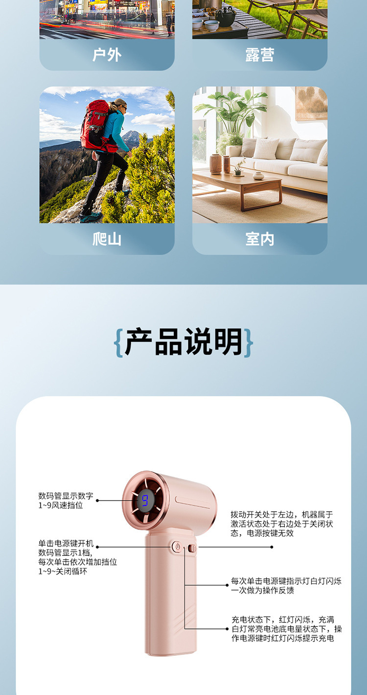新款高速手持风扇迷你便携式随身小型usb充电款桌面制冷电风扇 English | 投诉