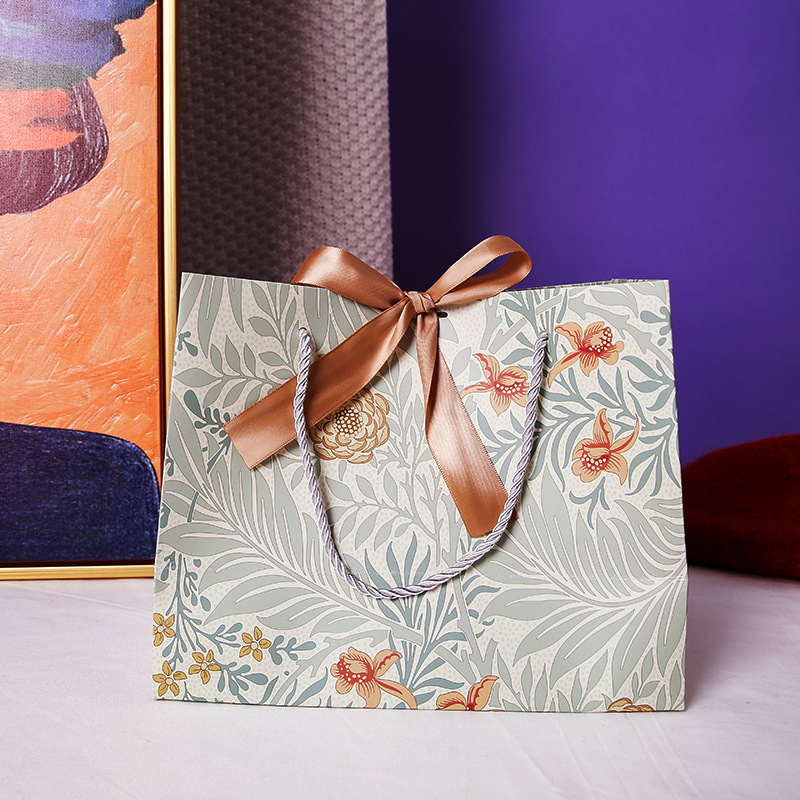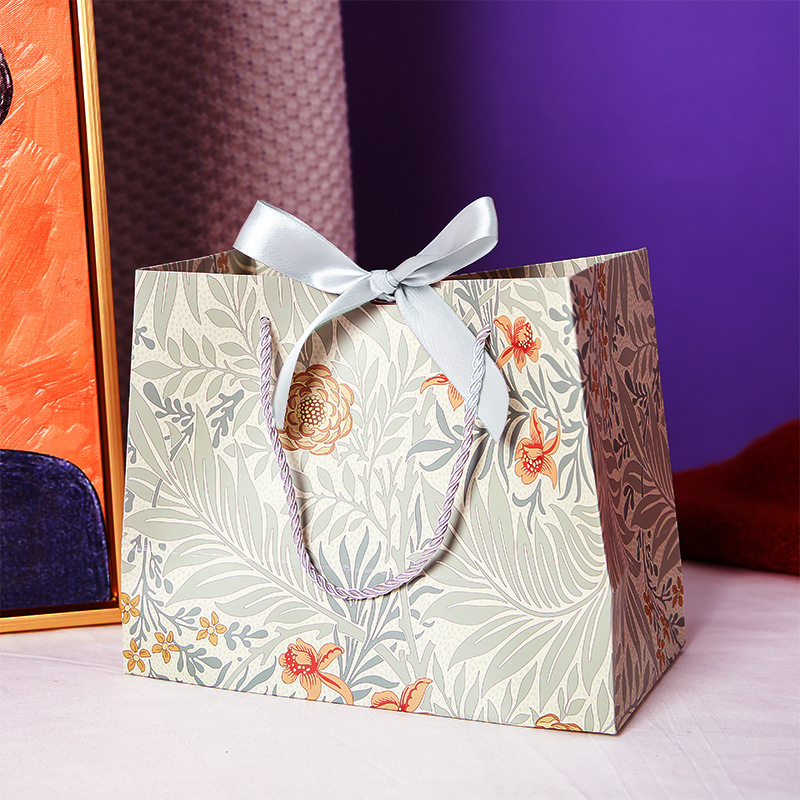名称:百合花束礼品袋 材质:230克白卡纸 四色印刷工艺,丝带:2.5cm宽 尺寸:长*侧宽*高cm 小号18*10*16cm / 中号25*12*20cm / 大号36*12*25cm