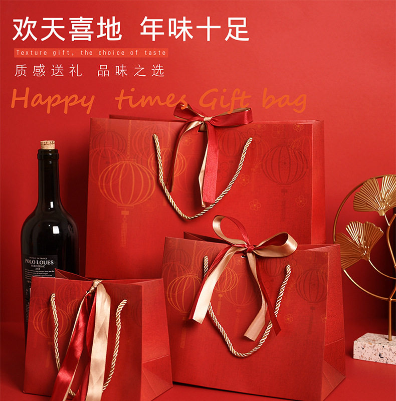 国潮风红灯笼礼品袋高级感春节送礼包装袋年会手提袋配丝带可印字
