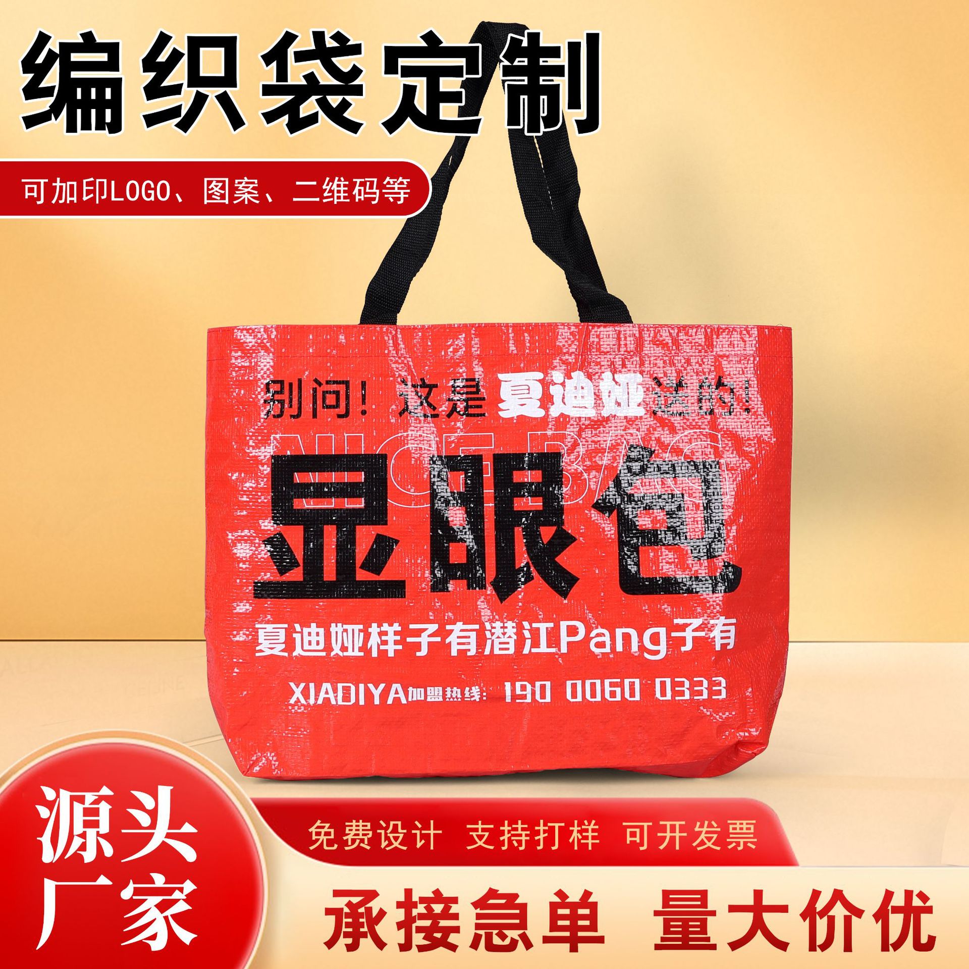 pp手提编织袋广告防水彩印覆膜购物袋现货大容量展会显眼包宣传袋 投诉