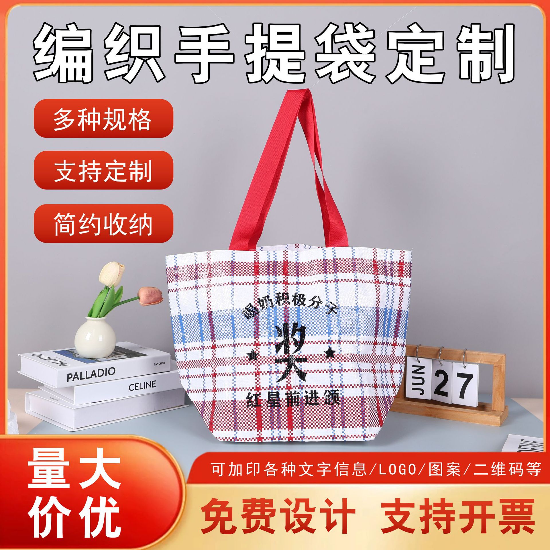 pp手提编织袋广告防水彩印覆膜购物袋现货大容量展会显眼包宣传袋