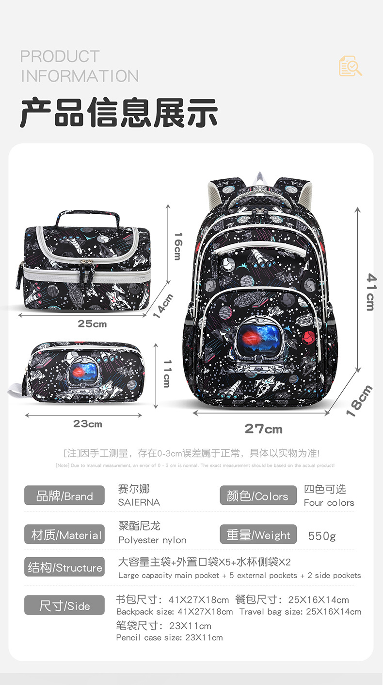 赛尔娜新款亚马逊书包小学生男女大容量轻便减幅三件套学生书包 投诉