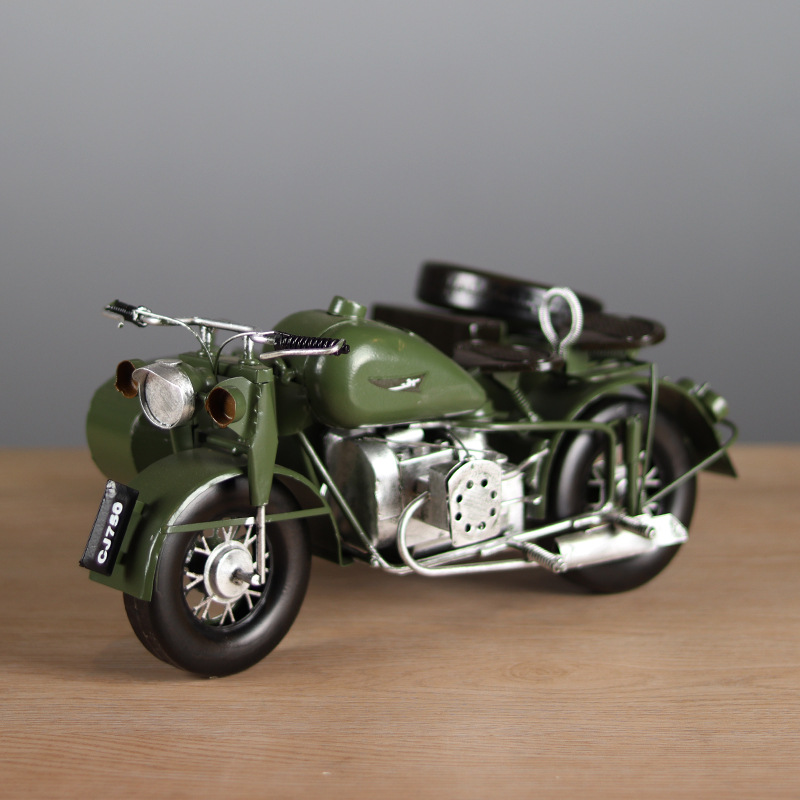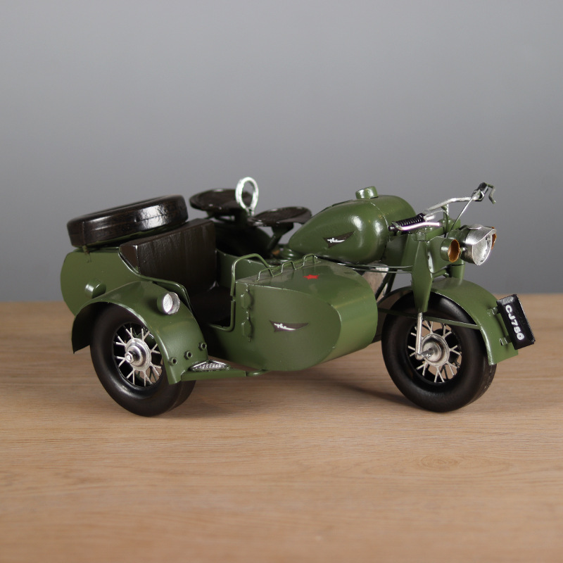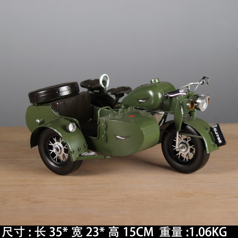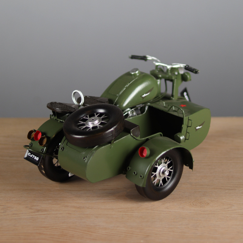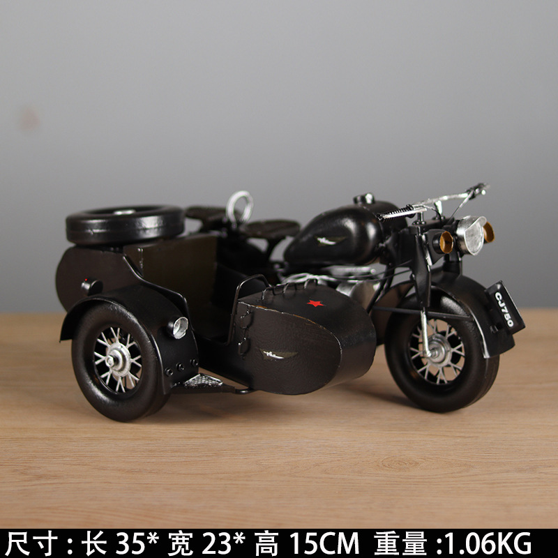 复古长江750挎斗偏三轮摩托车模型摆件客厅玄关摆设怀旧橱窗装饰