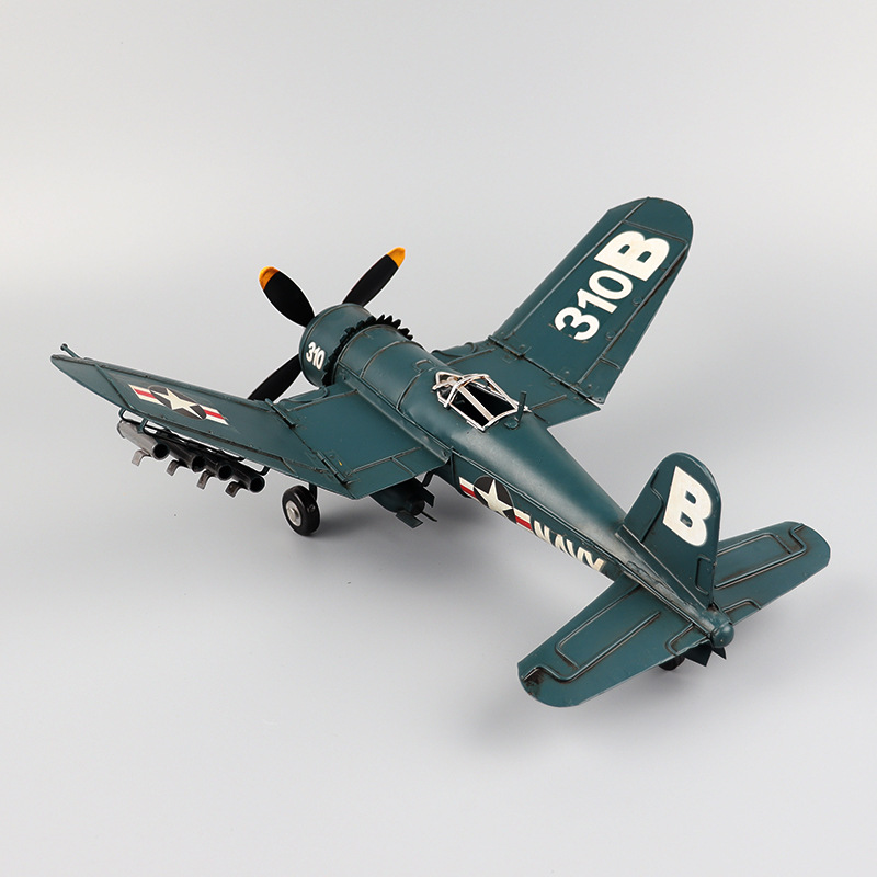 二战美军F-4U海盗战斗机模型铁艺飞机客厅旧酒吧橱窗柜装饰品摆件