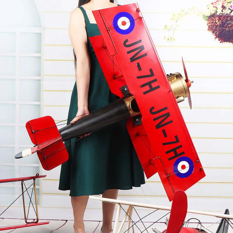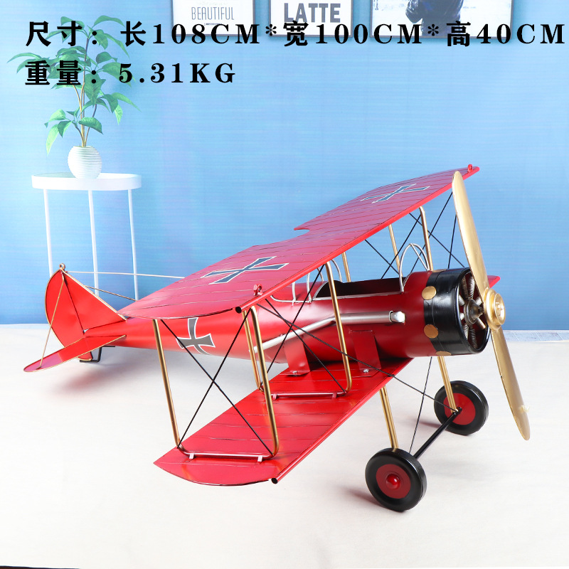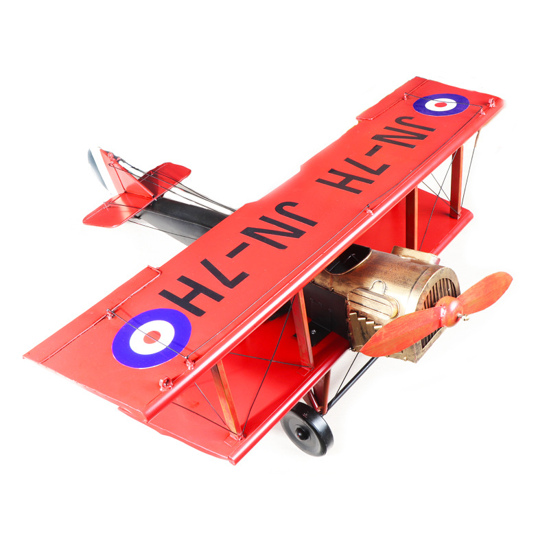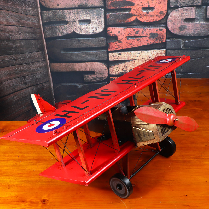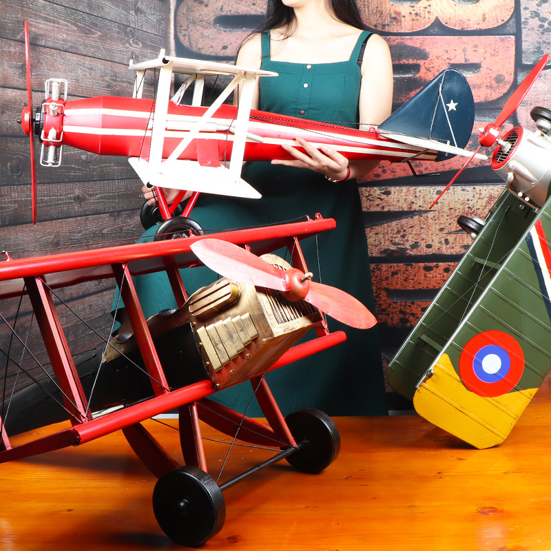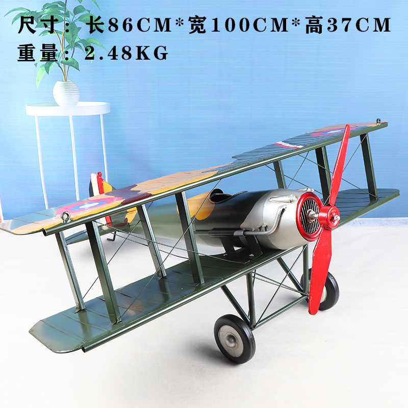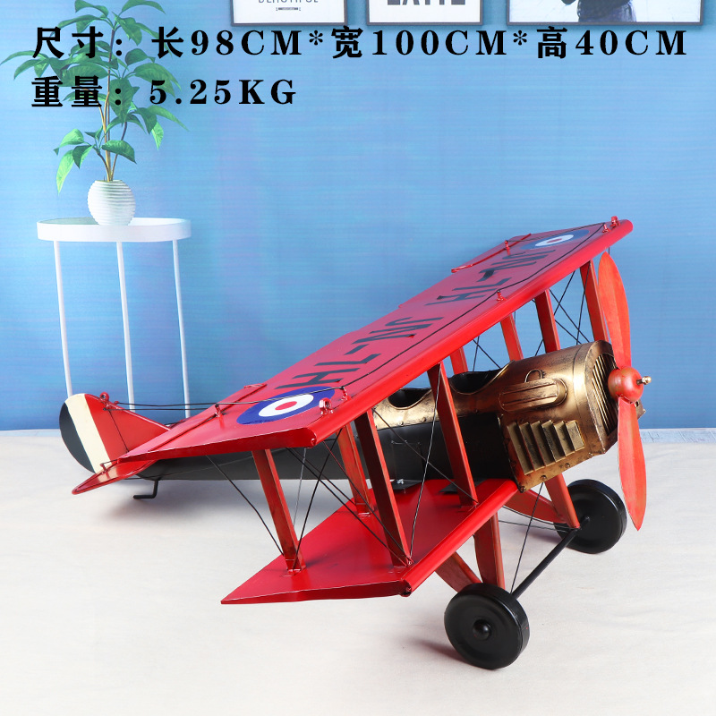 爆款复古英伦风高品质双机翼飞机模型铁质手工艺家居摆件批发铁制
