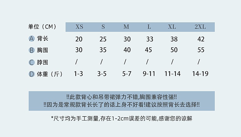 | 2XL-码胸55背40(14-19斤) | ¥0 | 2959件可售 |