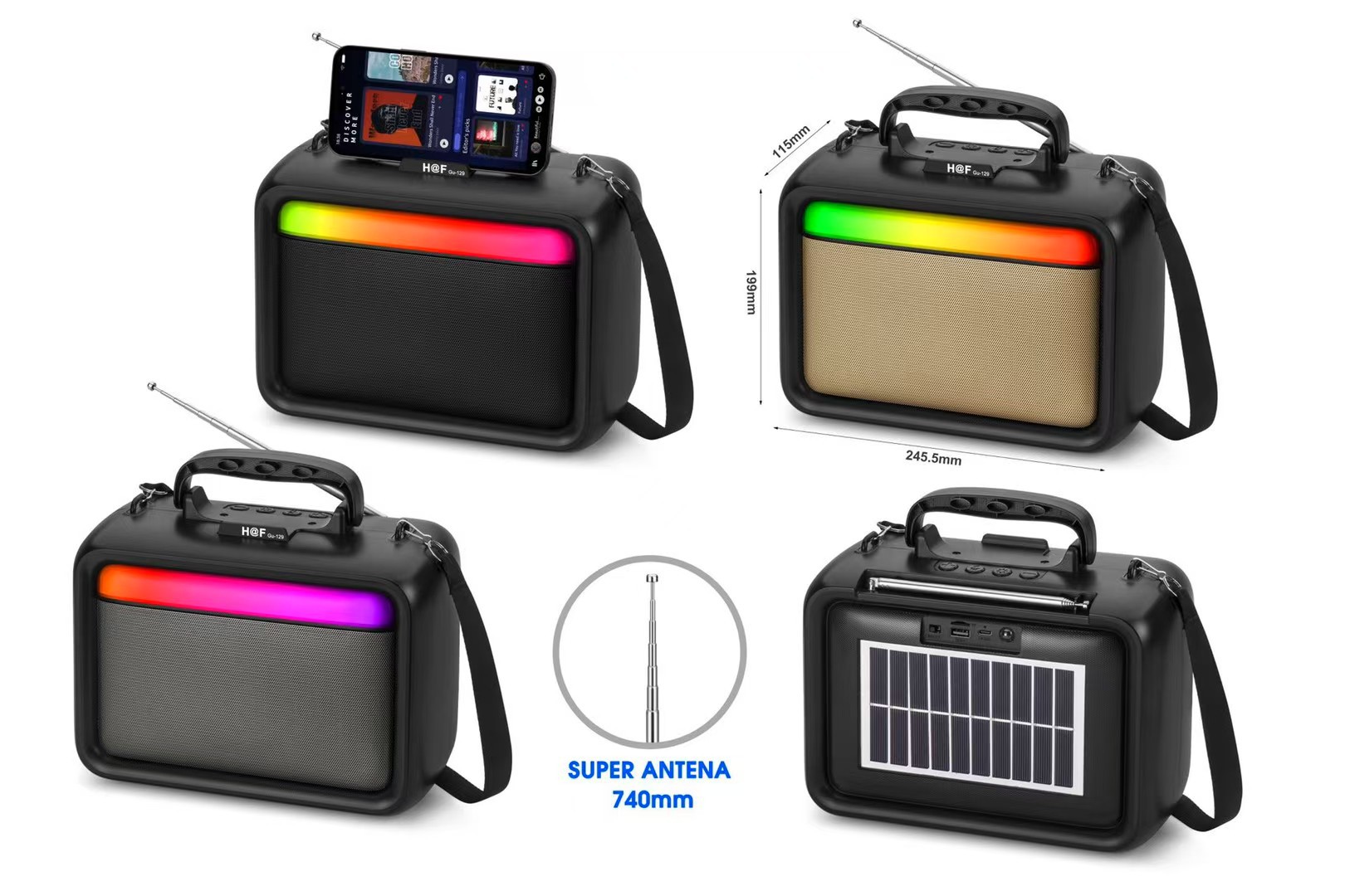 Gu-165外贸新品太阳能无线蓝牙音箱户外手提RGB灯25W大功率收音机 English | 投诉
