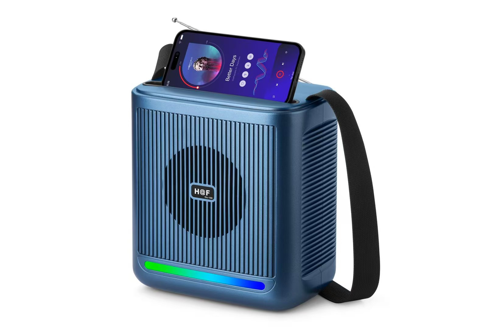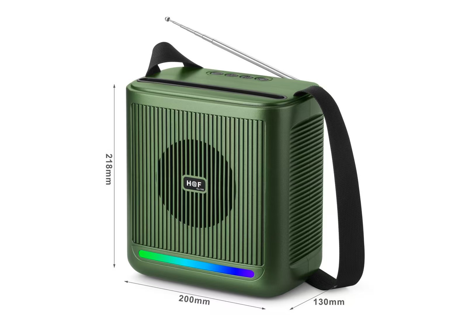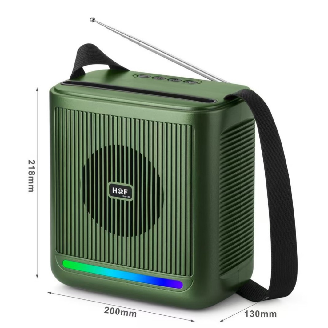 品牌: 中性 箱体材质: ABS 电源方式: 锂电池 防水等级: 不防水 外观尺寸: 200*130*218MM 内置蓄电池容量: 1200mAh-2000mAh(含) 连接方式: 蓝牙连接 是否内置电池: 内置电池 适用场景: 车载,桌面,健身运动,户外,居家,移动便 上市时间: 2025 频响范围: 100HZ-20KHZ 信噪比: ≥70db 喇叭数: 1 有效距离: 10米 售后服务: 店铺三包 货号: Gu-166 颜色: 黑色/绿色/蓝色/铁灰色 规格: 下单备注颜色 是否外贸: 是(本商品仅供外贸用途,可能不符合境内产 主要下游平台: ebay,亚马逊,wish,速卖通,独立