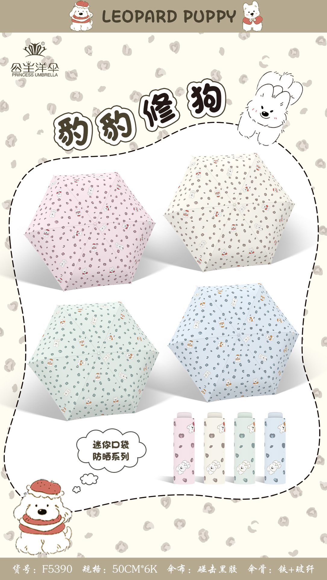 防紫外线迷你晴雨伞 UPF50 + 黑胶防晒伞 小狗日记口袋折叠伞