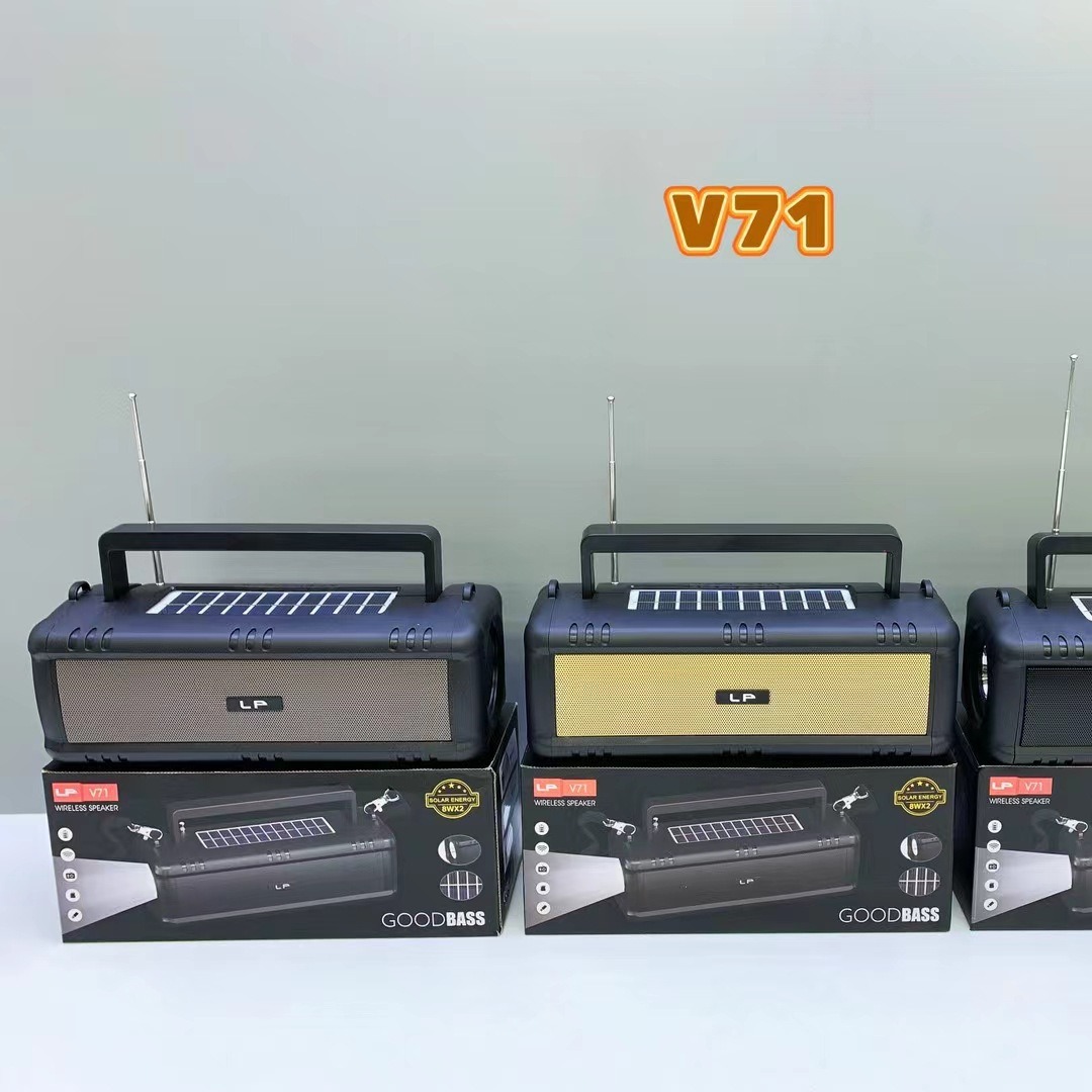 新款V71太阳能蓝牙音箱手提无线户外收音机大功率筒便捷插卡音响
