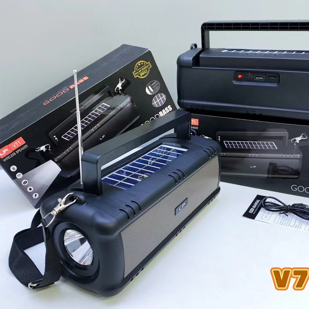 新款V71太阳能蓝牙音箱手提无线户外收音机大功率筒便捷插卡音响 English | 投诉