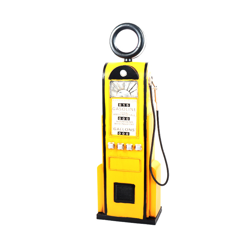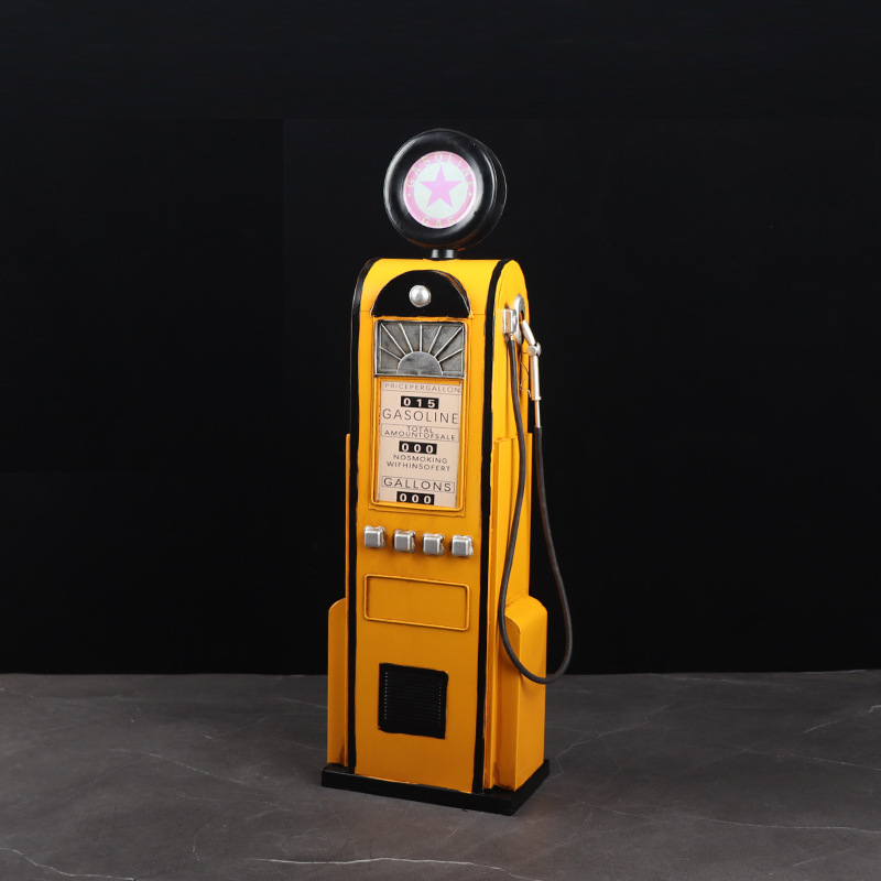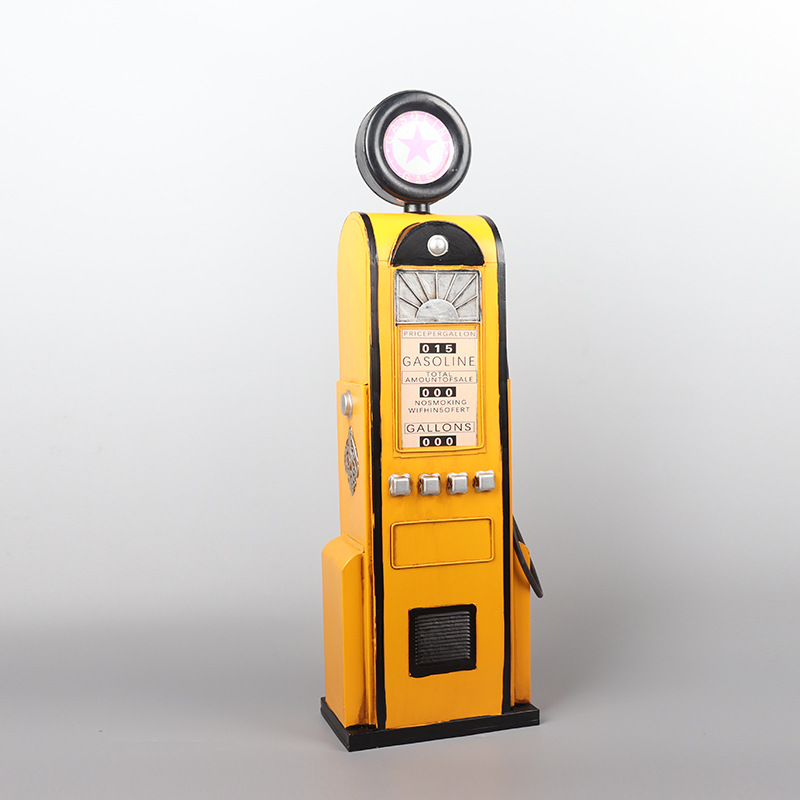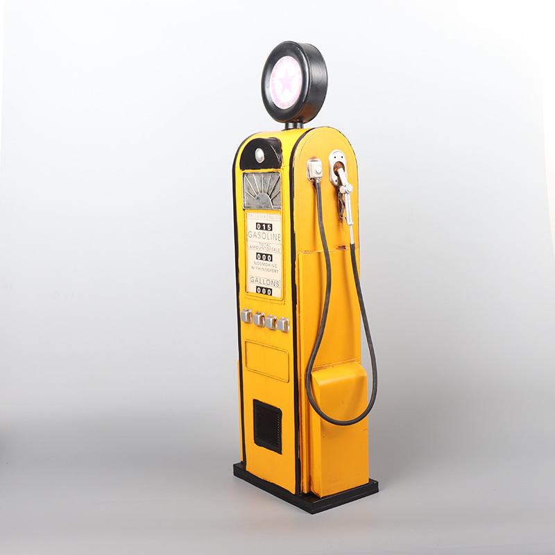 复古铁艺加油机模型落地摆件装饰物酒柜储物柜创意家居软装饰品