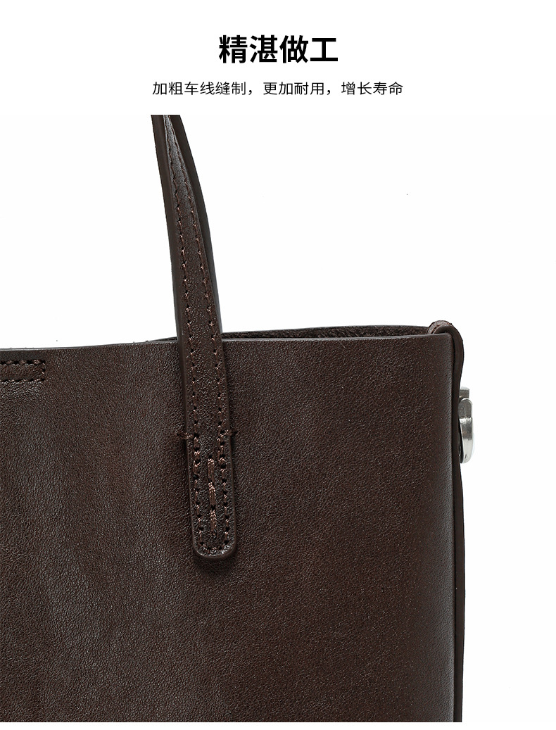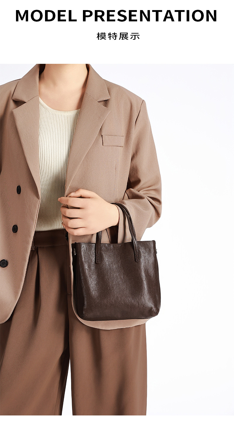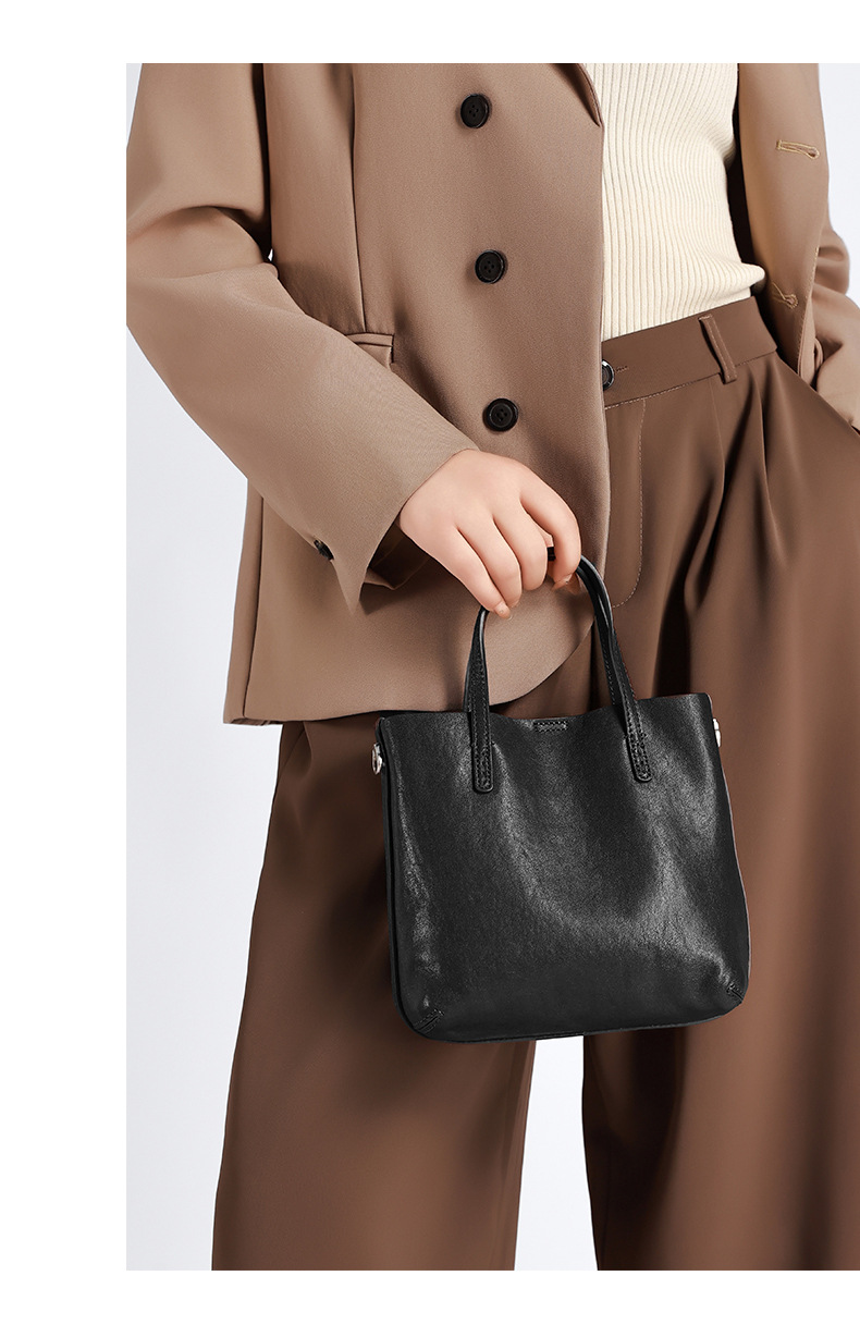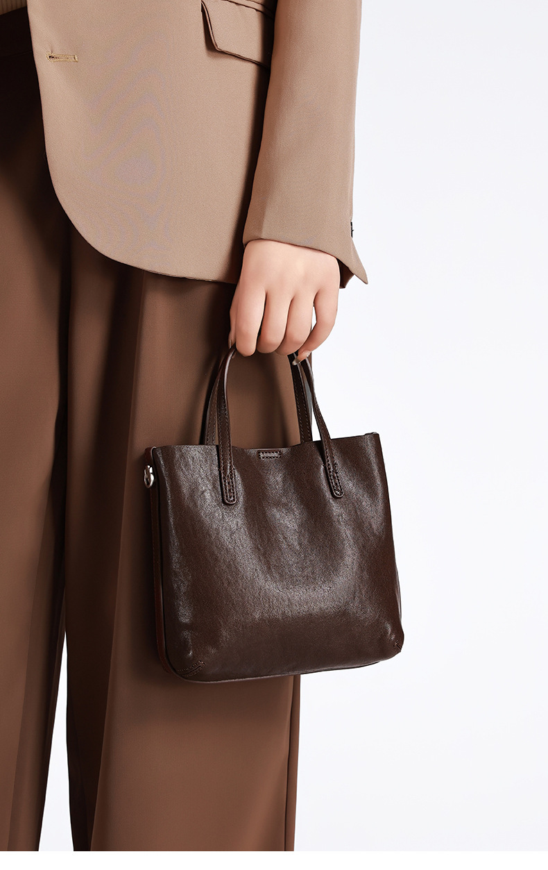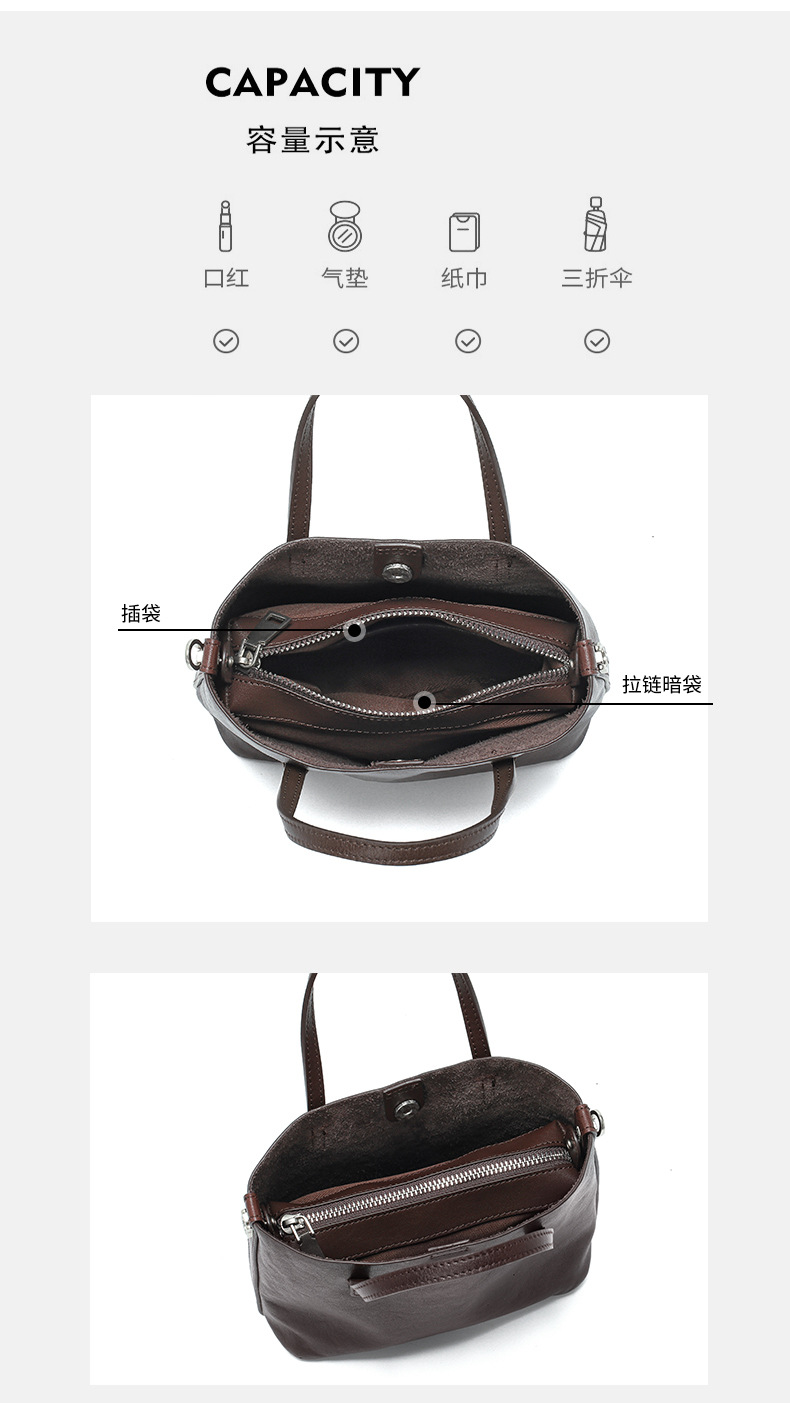 头层植鞣牛皮小托特包女2026新款百搭精致手提包真皮斜挎包水桶包