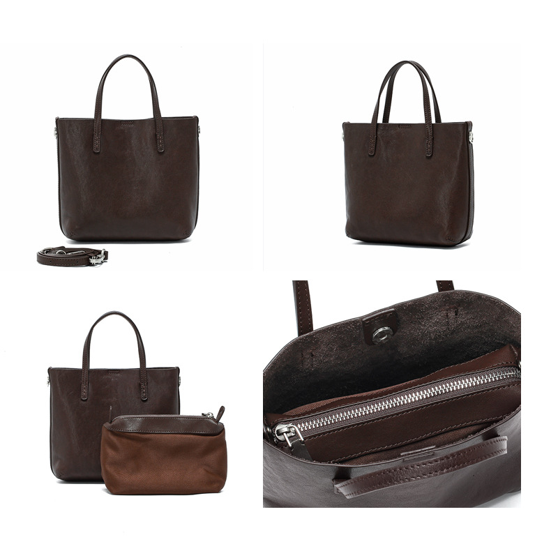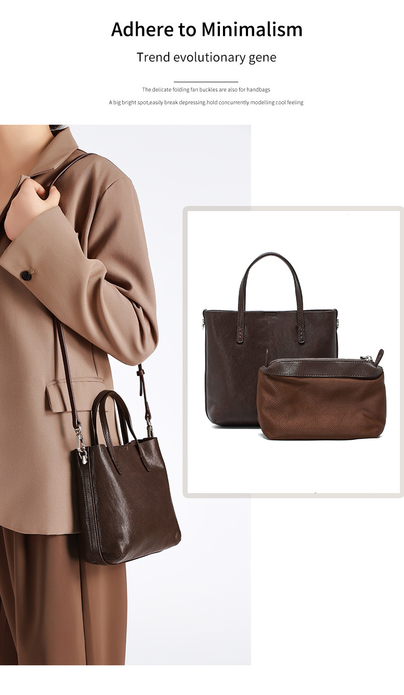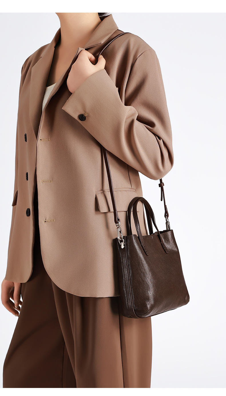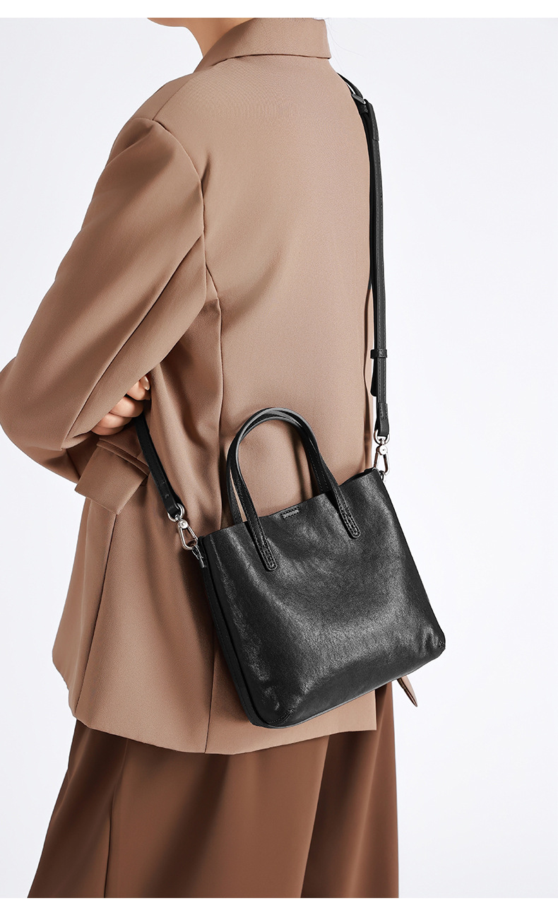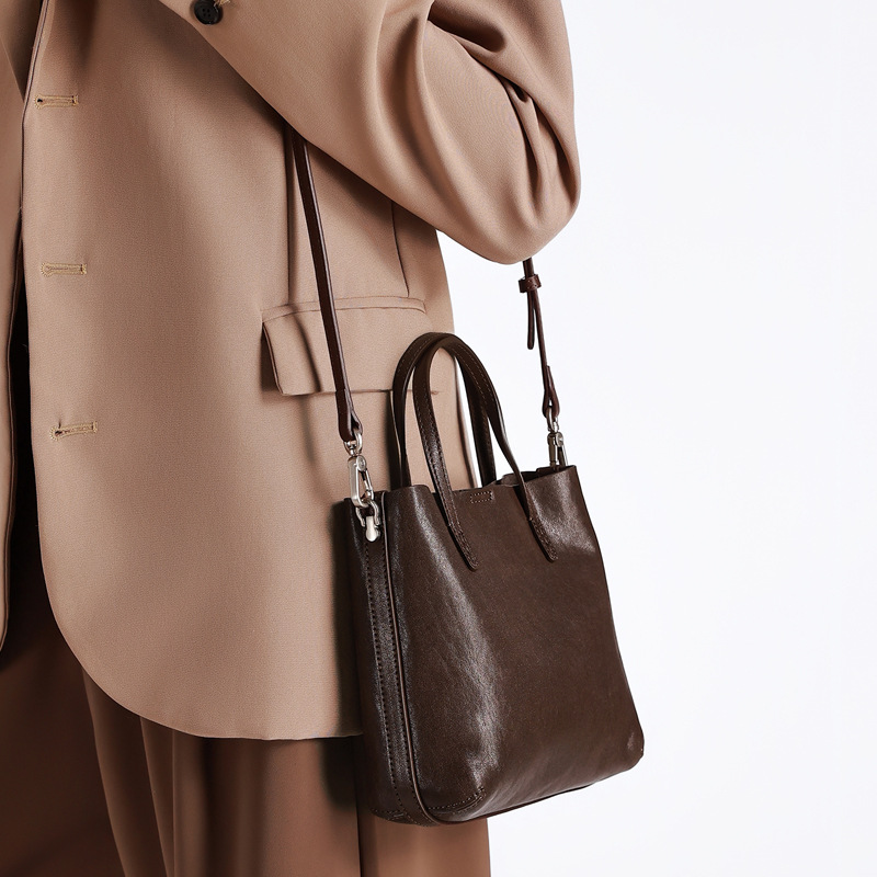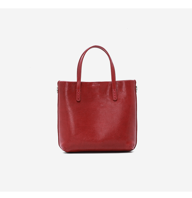 头层植鞣牛皮小托特包女2026新款百搭精致手提包真皮斜挎包水桶包