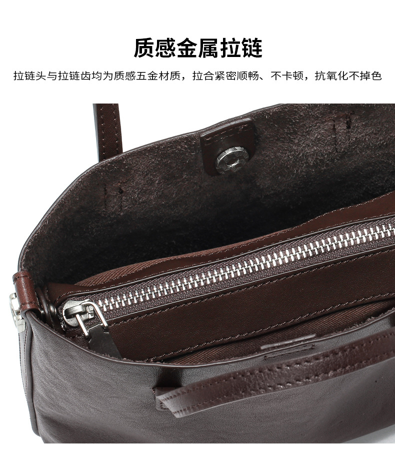 材质: 真皮 箱包潮流款式: 水桶包 箱包大小: 中 流行元素: 纯色,拉链,车缝线 皮质特征: 头层植鞣牛皮 开盖方式: 拉链 里料质地: 涤棉 品牌: 其他 颜色: 咖啡色,红色,黑色 风格: 都市简约 货号: ZH263 上市年份季节: 2026年春季 箱包形状: 水桶型 包内部结构: 拉链暗袋,手机袋,证件袋,夹层拉链袋 硬度: 中偏软 外袋种类: 内贴袋 有可授权的自有品牌: 是 有无夹层: 有 肩带根数: 单根 适用场景: 日常搭配 重量: 0.4 kg/个
