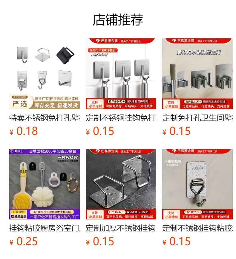 不锈钢挂钩免打孔强力承重粘胶门后挂衣钩子