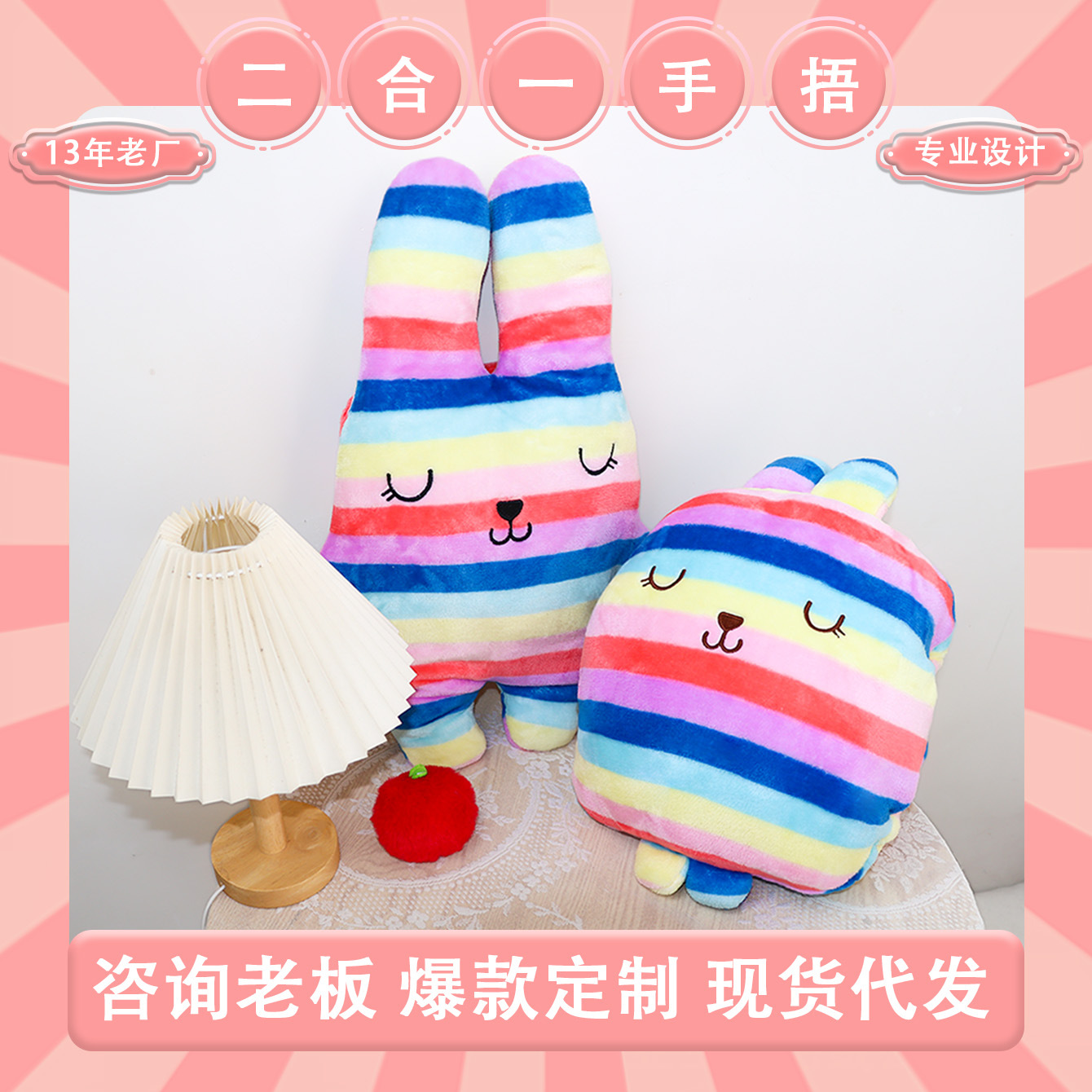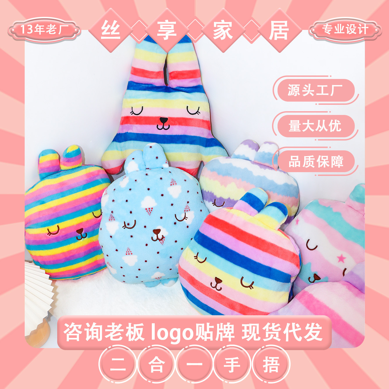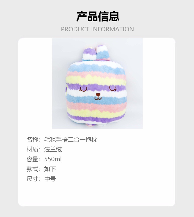 填充物: PP棉 产品类别: 抱枕被 品牌: 丝享 风格: 卡通风 织造工艺: 刺绣,印花 货号: 新款手捂 外套材质: 毛绒 加工定制: 是 图案: 其他 颜色: 条纹1,条纹2,波浪1,波浪2,蓝色冰淇 尺寸: 43*33cm 是否有版权或专利: 否