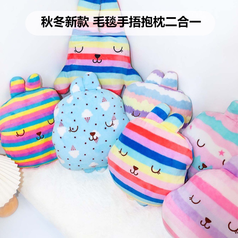 法兰绒抱枕毯 卡通抱枕二合一印花暖手抱枕插手抱枕毯 English | 投诉