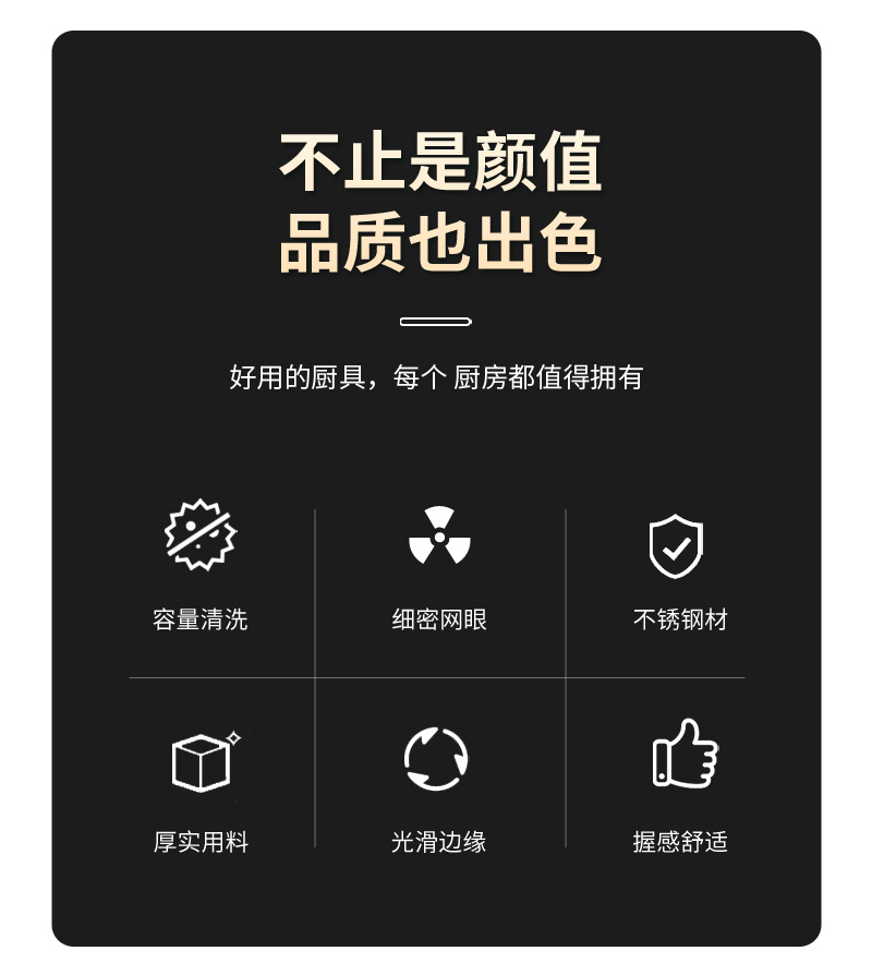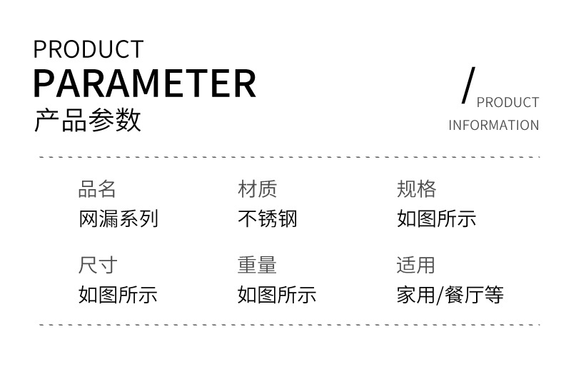 材质: 不锈钢 功能: 防滑,防烫 品牌: 新盛 是否进口: 否 货号: 不锈钢漏勺 产地: 揭阳 加印LOGO: 可以 产品上市时间: 2021年夏 价格段: 5元以内 加工定制: 否 是否有专利: 无 是否跨境出口专供货源: 否 风格: 现代简约 重量: 0.236 kg/个