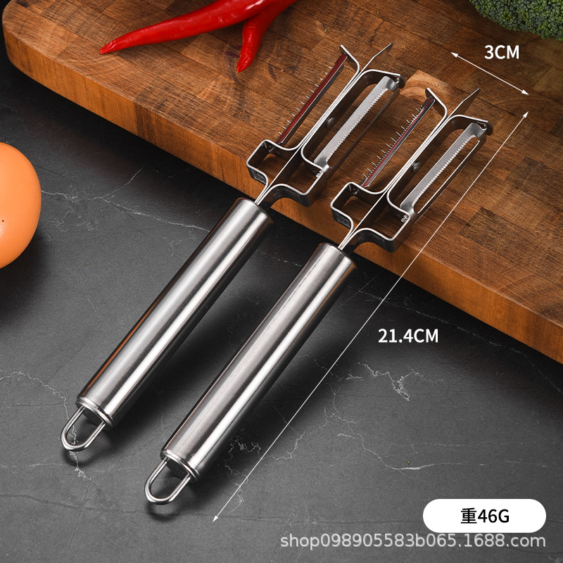 功能: 多功能 材质: 不锈钢 品牌: 揭兴 是否进口: 否 产地: 揭阳 产品上市时间: 2023 货号: 三用削皮刀 加工定制: 否 加印LOGO: 可以 价格段: 5元以内 是否有专利: 无 适用送礼场合: 所有地方 塑料: 无 规格: 钢三用 是否跨境出口专供货源: 否 风格: 现代简约 重量: 0.351 kg/个