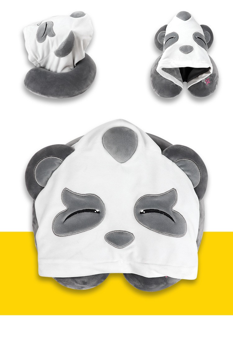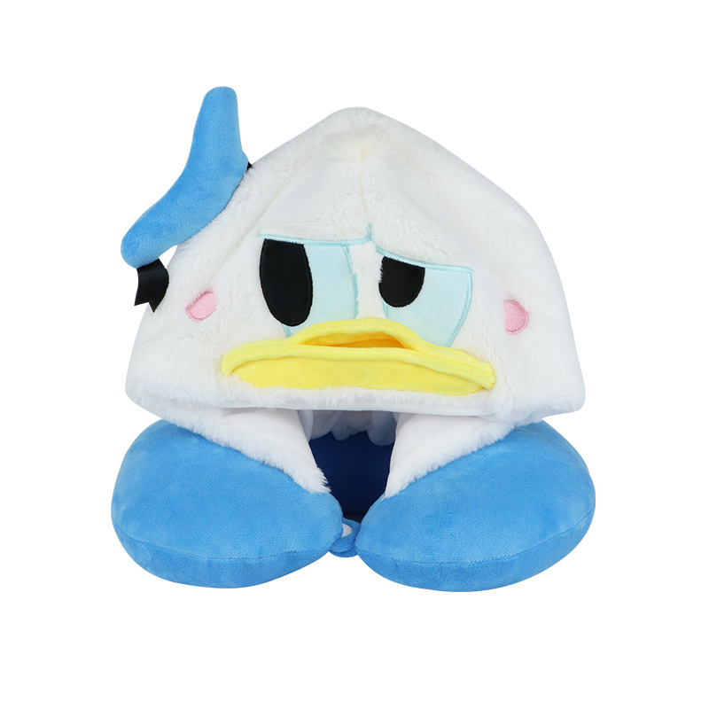 可爱卡通加油鸭U型枕 连帽护颈枕定制 动物IP礼品旅行U型枕定制