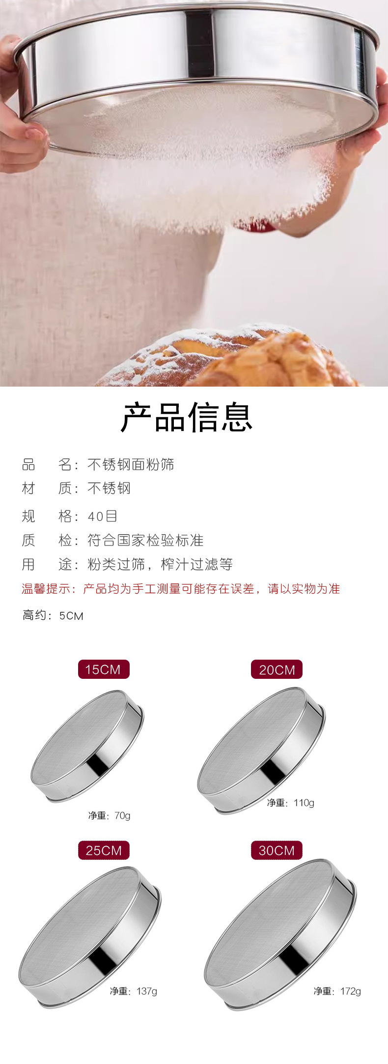 | 40目不锈钢面粉筛25CM(042042) | ¥650 | 9994个可售 |