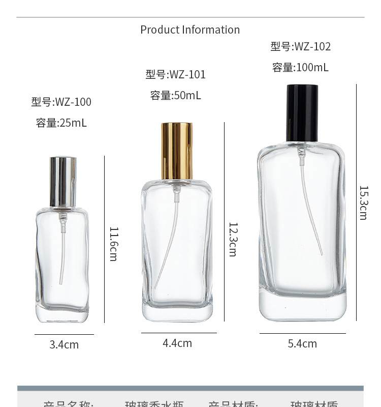 包装层次: 纸箱 品牌: 谨耀谨禾 主要下游平台: wish,亚马逊,独立站,速卖通,LAZ 主要销售地区: 东南亚,东北亚,拉丁美洲,非洲,欧洲,中 是否跨境出口专供货源: 否 误差: ±5ml 货号: JH-Wz-100 原产国/地区: 中国 是否进口: 否 有可授权的自有品牌: 否 适用对象: 香水分装瓶 风格: 简约 产地: 江苏徐州 表面处理: 电镀,丝印,烫金,烫银 配附件: 玻璃瓶身,香水喷雾瓶,瓶身,喷雾瓶,喷雾 是否可加工定制: 是 工艺: 模制瓶 颜色: 透明