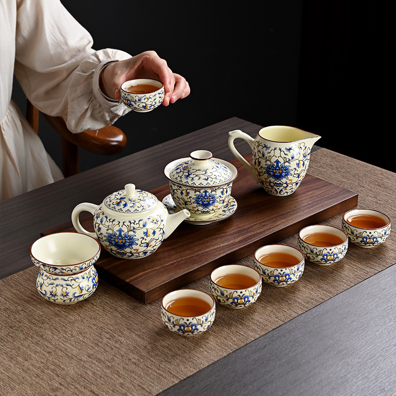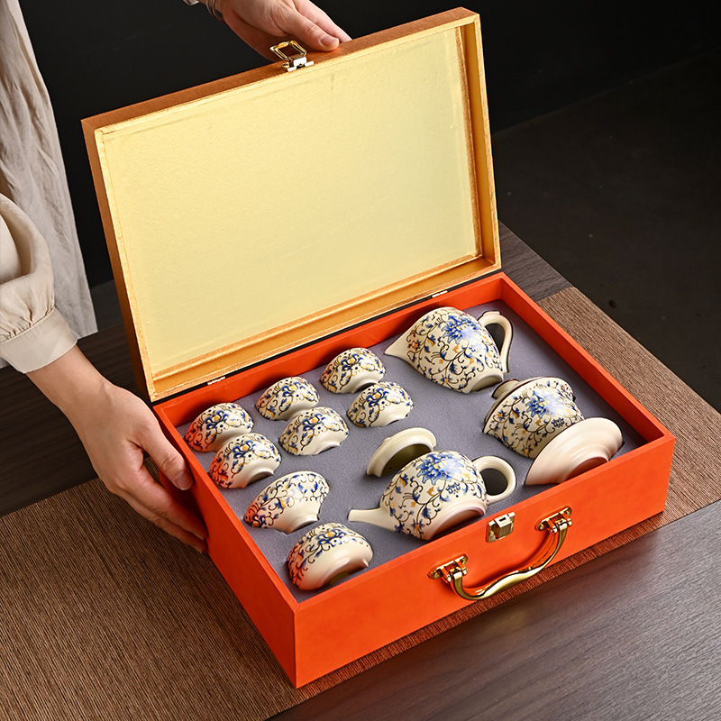 繁花文创国潮茶具套装缠枝莲整套套组陶瓷青花满花礼品商务伴手礼