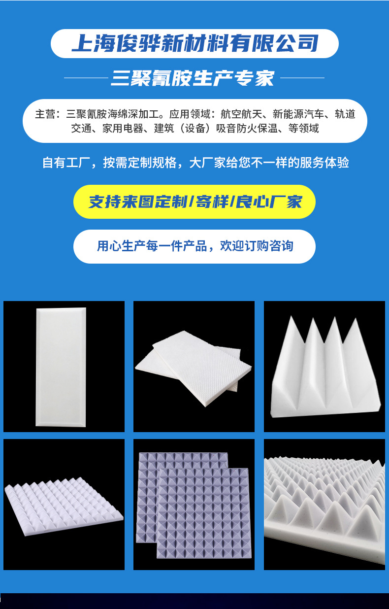 定制三聚氰胺吸音隔音棉高密度保温隔音绵录音棚隔音房窗户隔音绵 English | 投诉