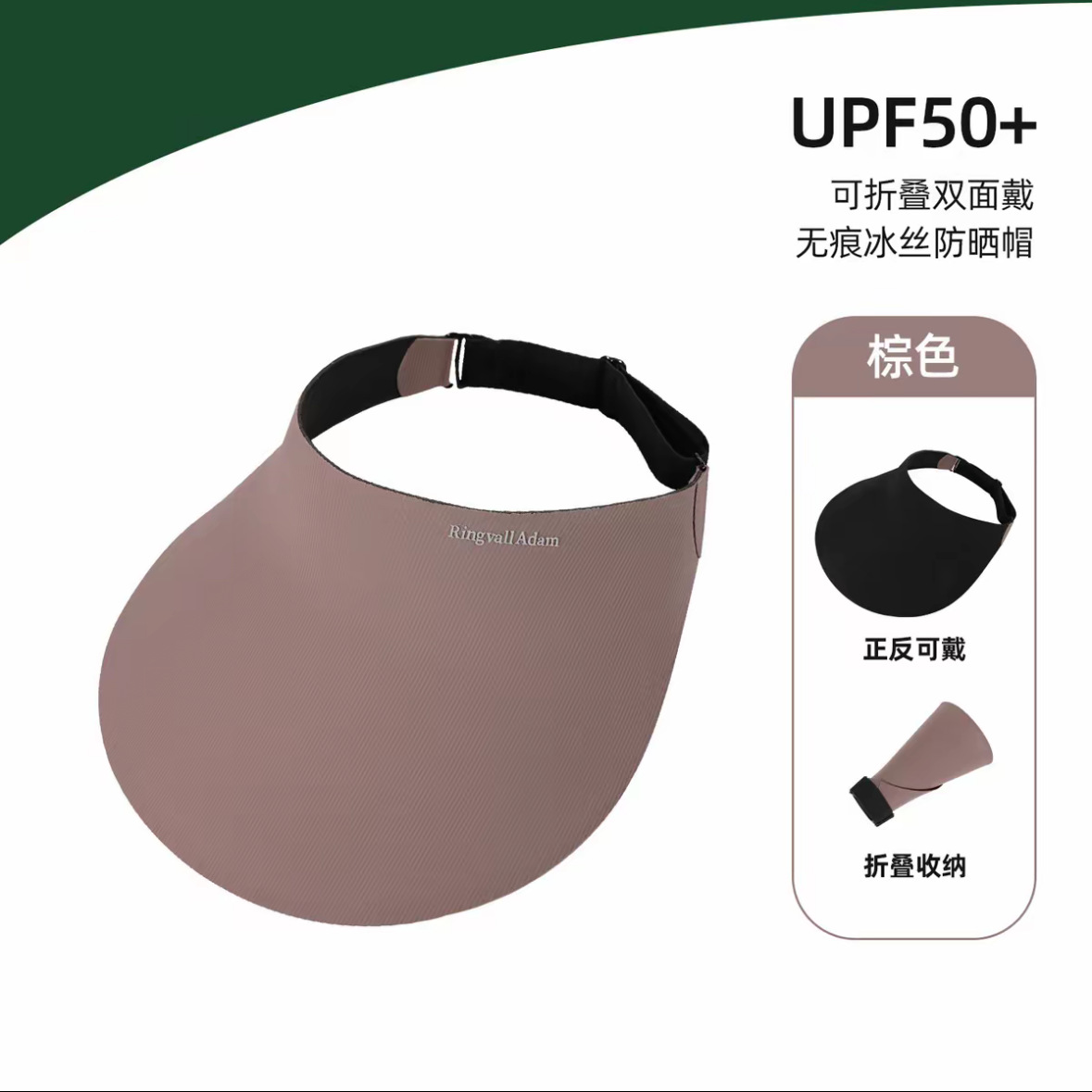 产品类别: 空顶帽 功能: 透气,防风,遮阳 面料名称: 锦纶 主面料成分: 锦纶 处理工艺: 其它 品牌: RINGVALL ADAM 风格: 简约风,百搭风,极简风,优雅风,时尚OL 货号: 6A 图案: 纯色,LOGO 适合季节: 夏季,春季,秋季 产地: 义乌 帽顶款式: 无顶 帽檐款式: 大檐 颜色: 烟熏紫,深灰色,米灰色,黑色,棕色 尺码: 可调节 是否跨境出口专供货源: 是 主要下游平台: 淘宝,京东,ebay,亚马逊,wish, 主要销售地区: 日韩,非洲,欧洲,南美,东南亚,北美,东 上市年份/季节: 2026年春季 是否可调节: 可调节 重量: 0.3 kg/顶