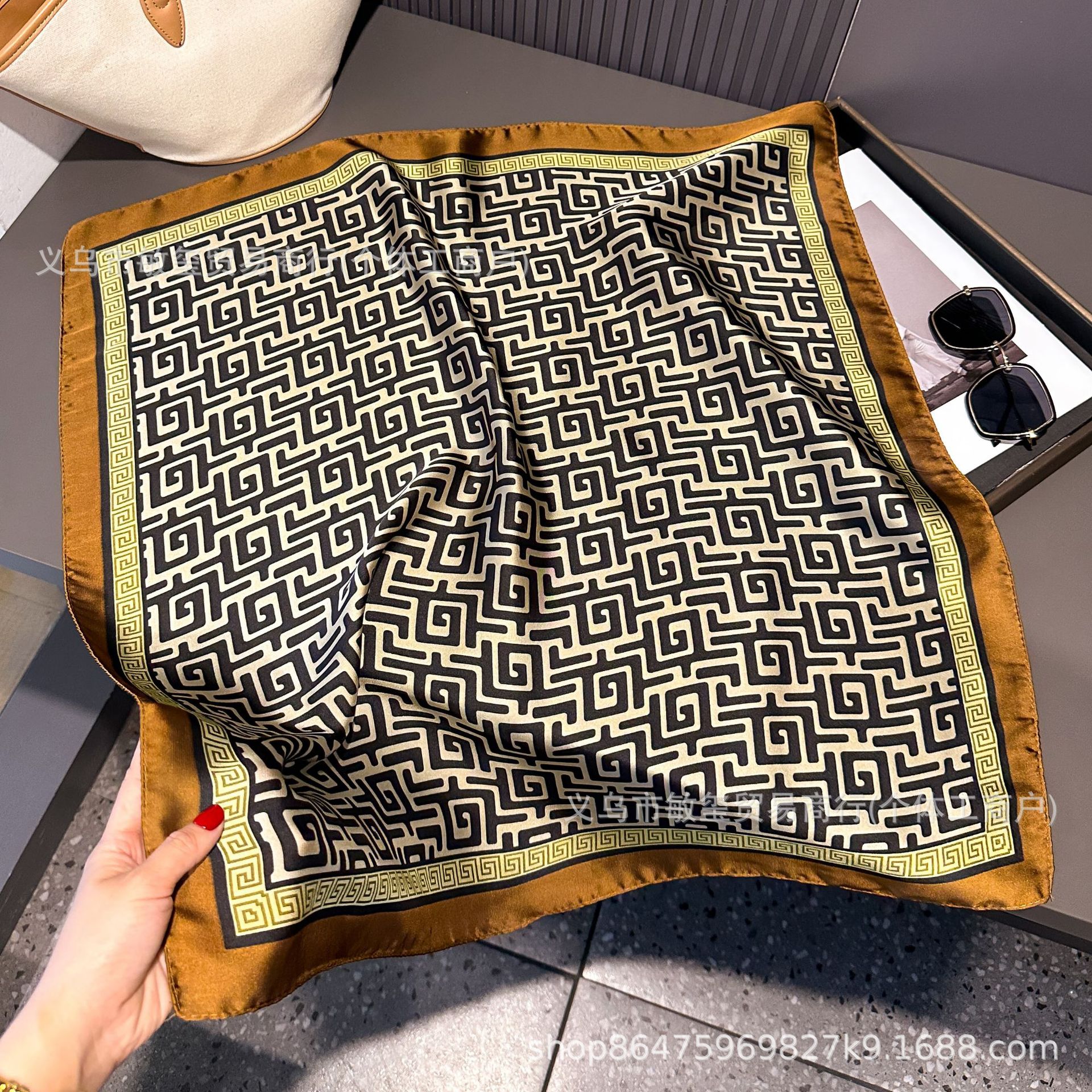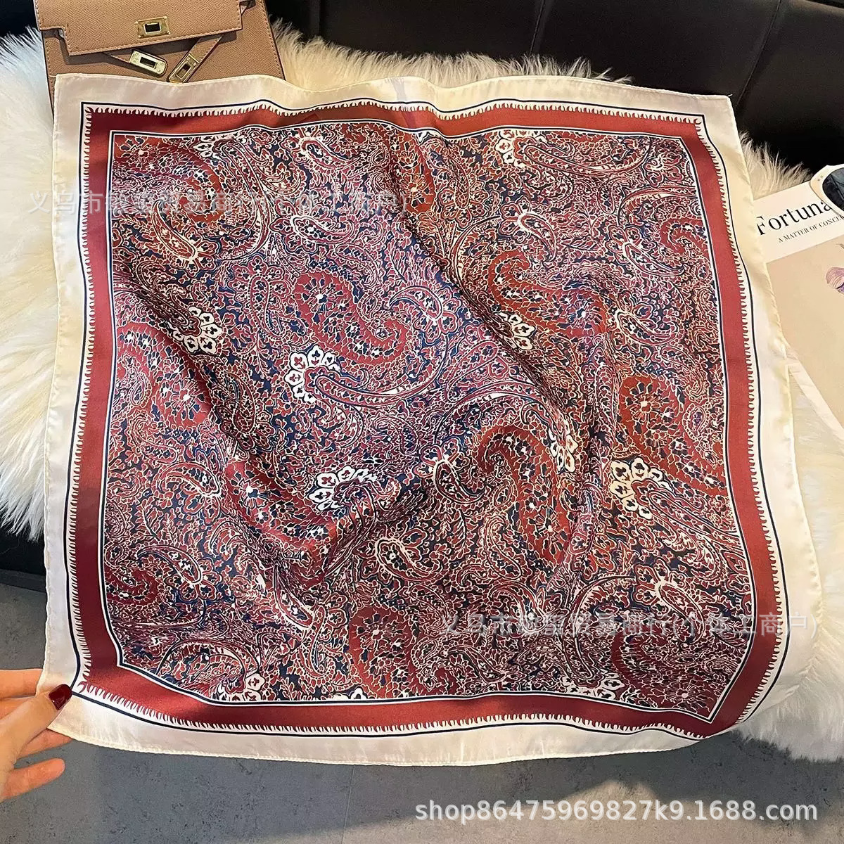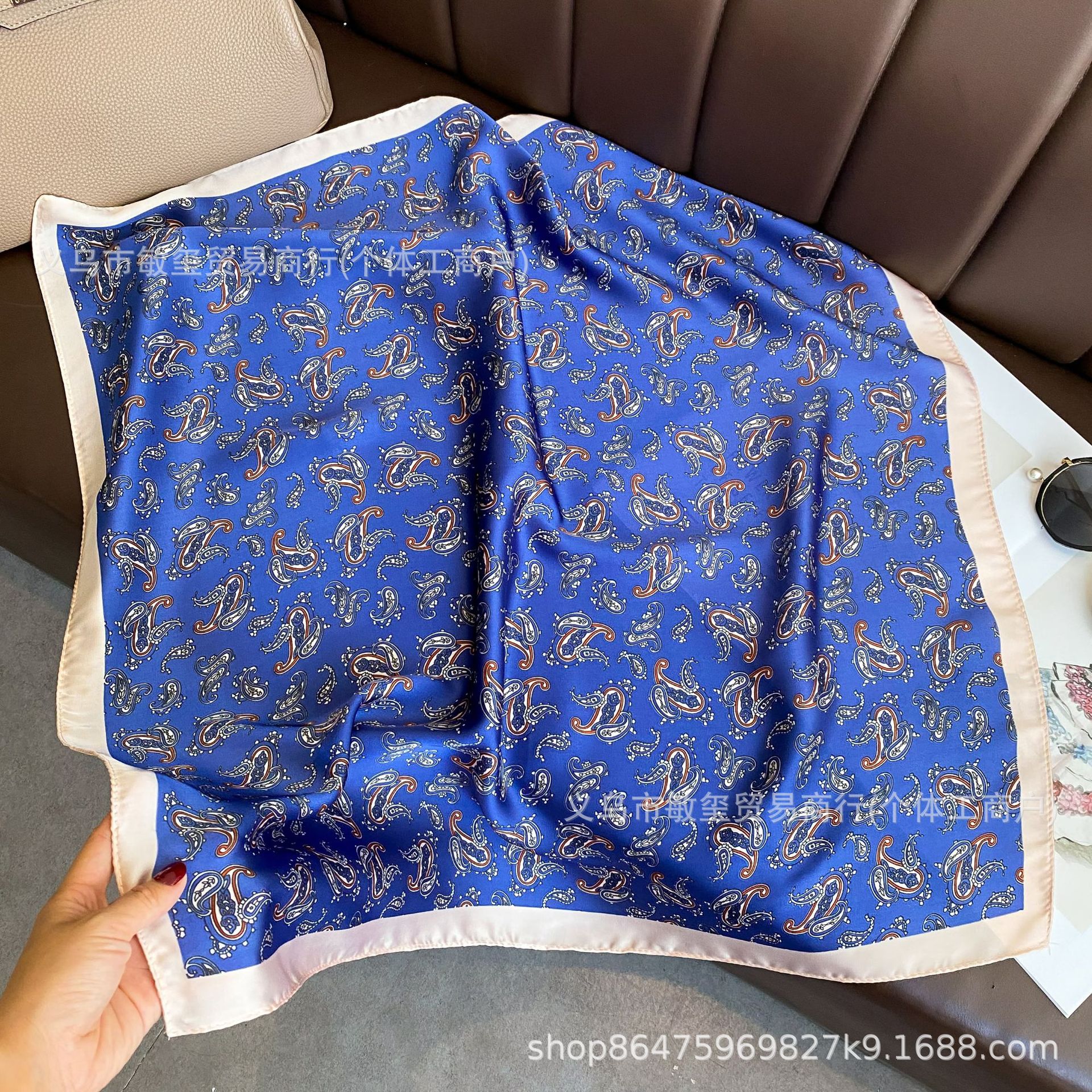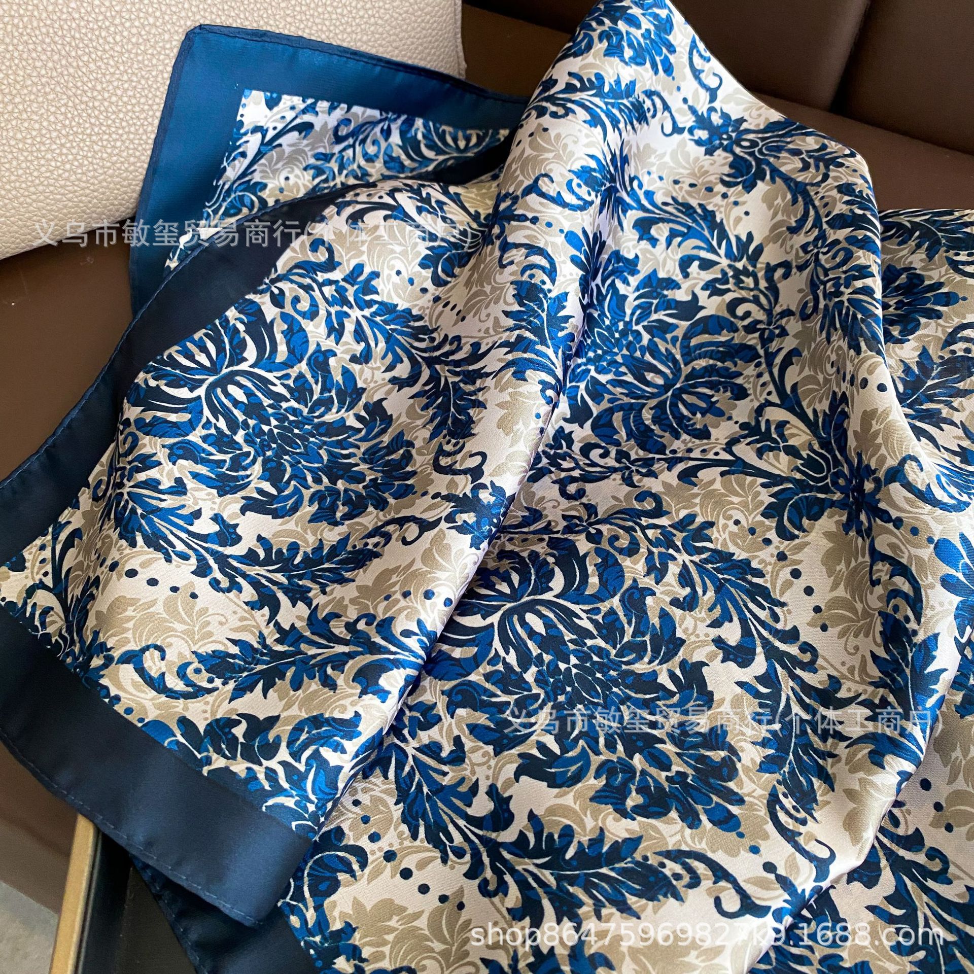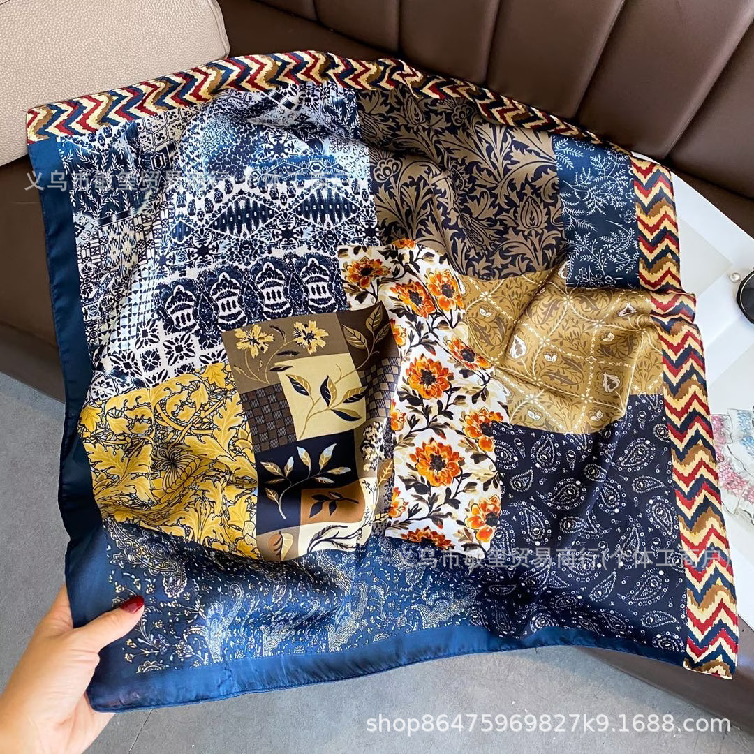 外贸工厂丽锦缎百搭波点腰果仿真丝70*70方巾高级感名媛围巾披肩 投诉