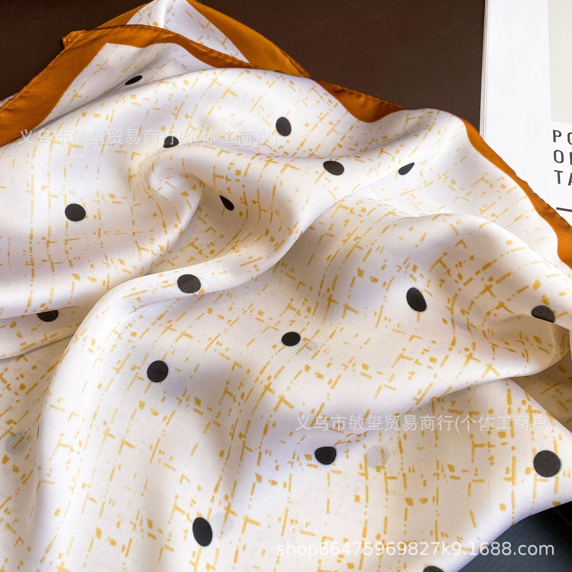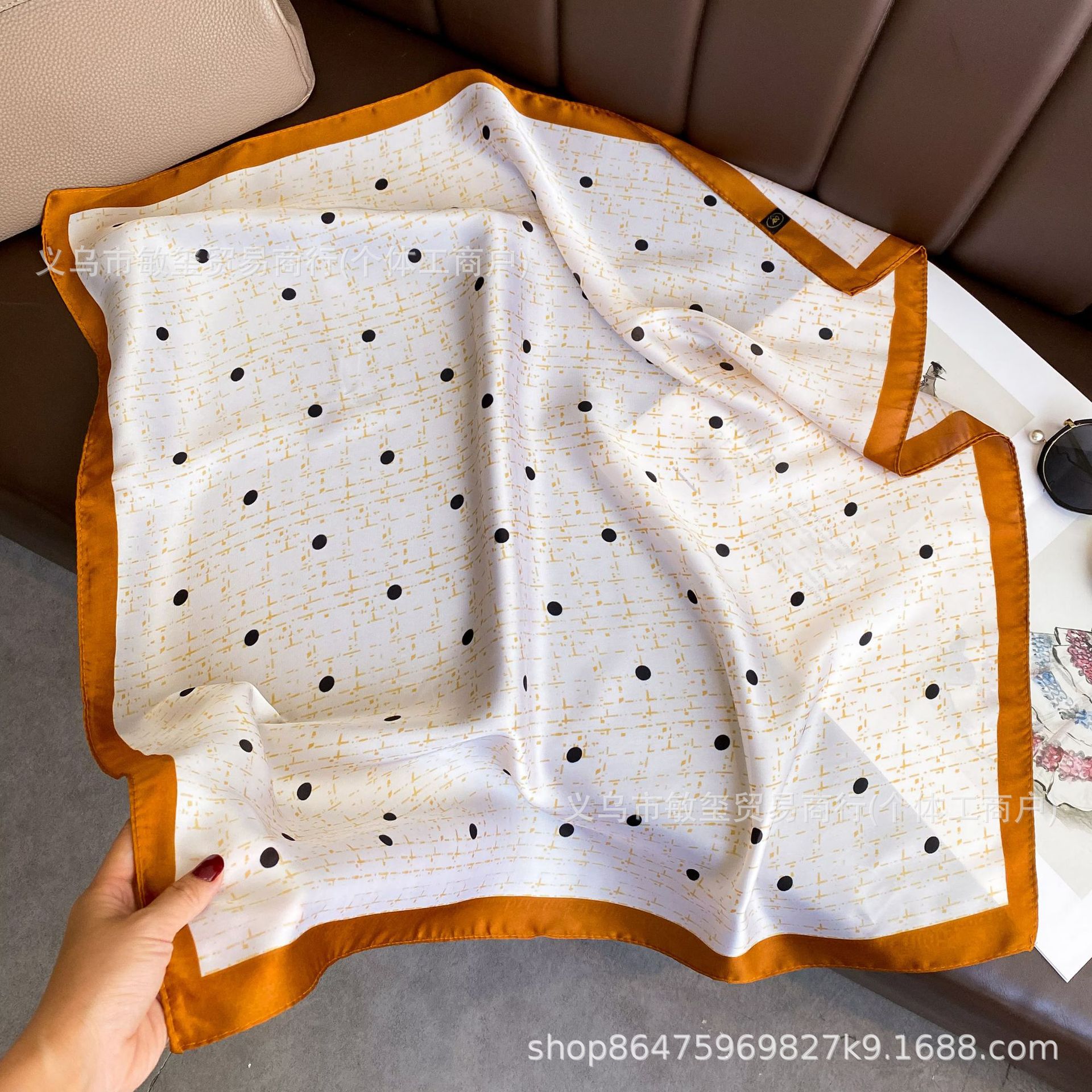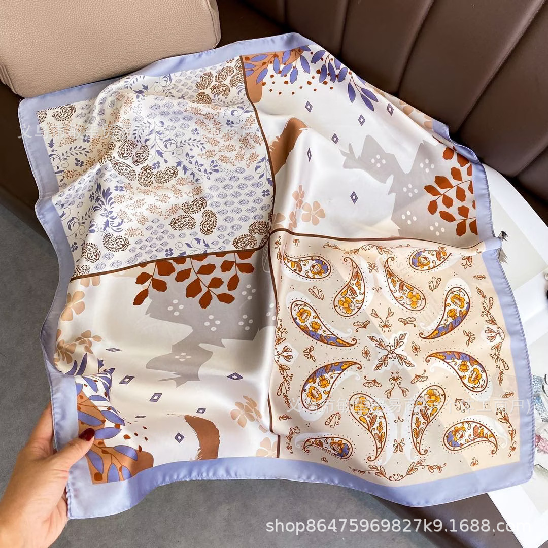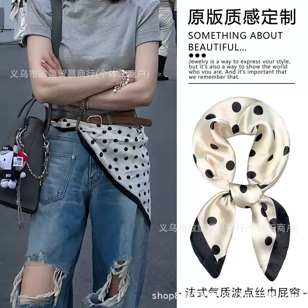 外贸工厂丽锦缎百搭波点腰果仿真丝70*70方巾高级感名媛围巾披肩