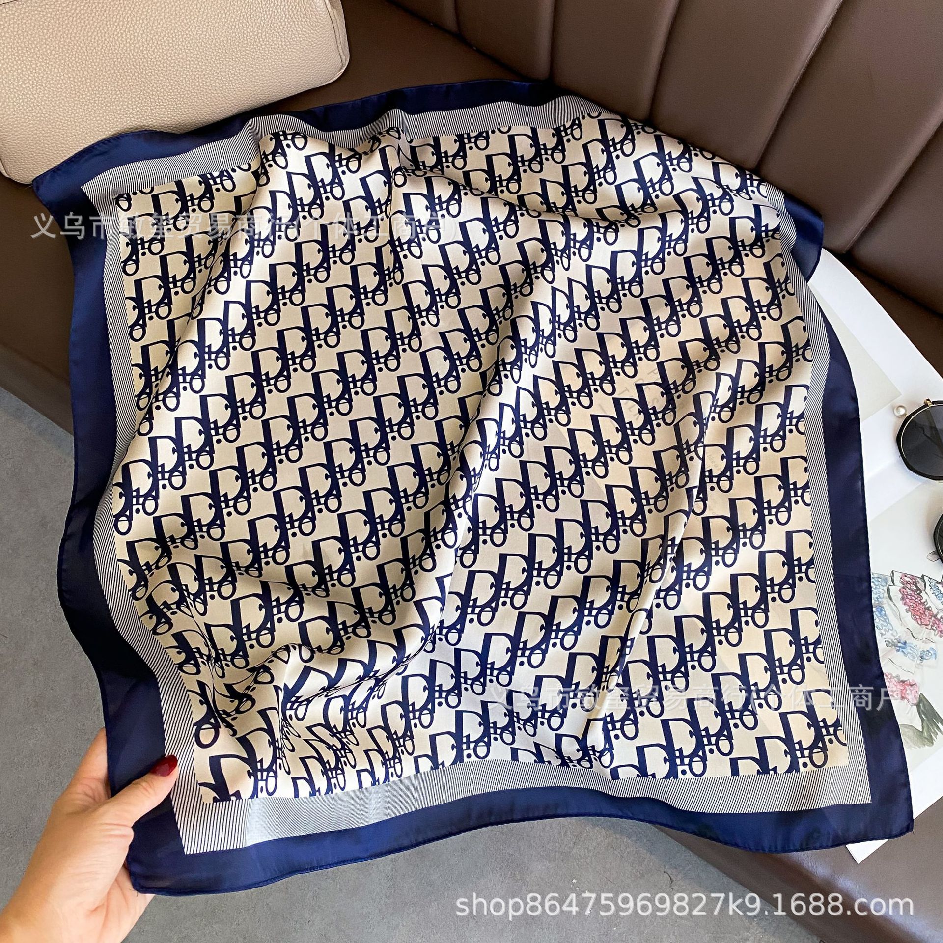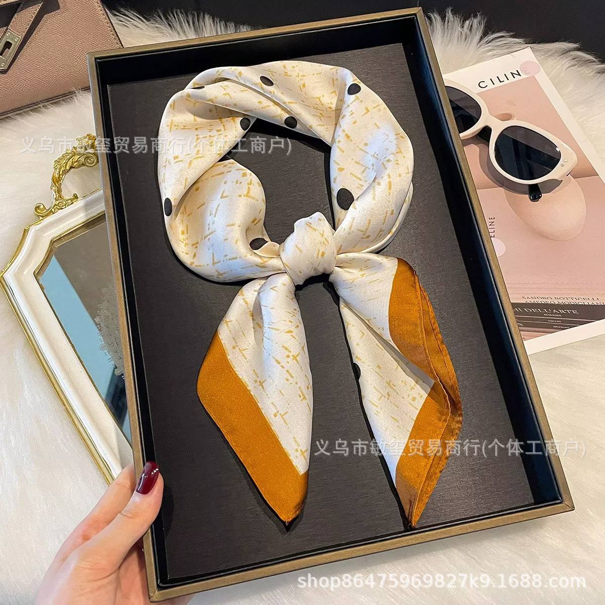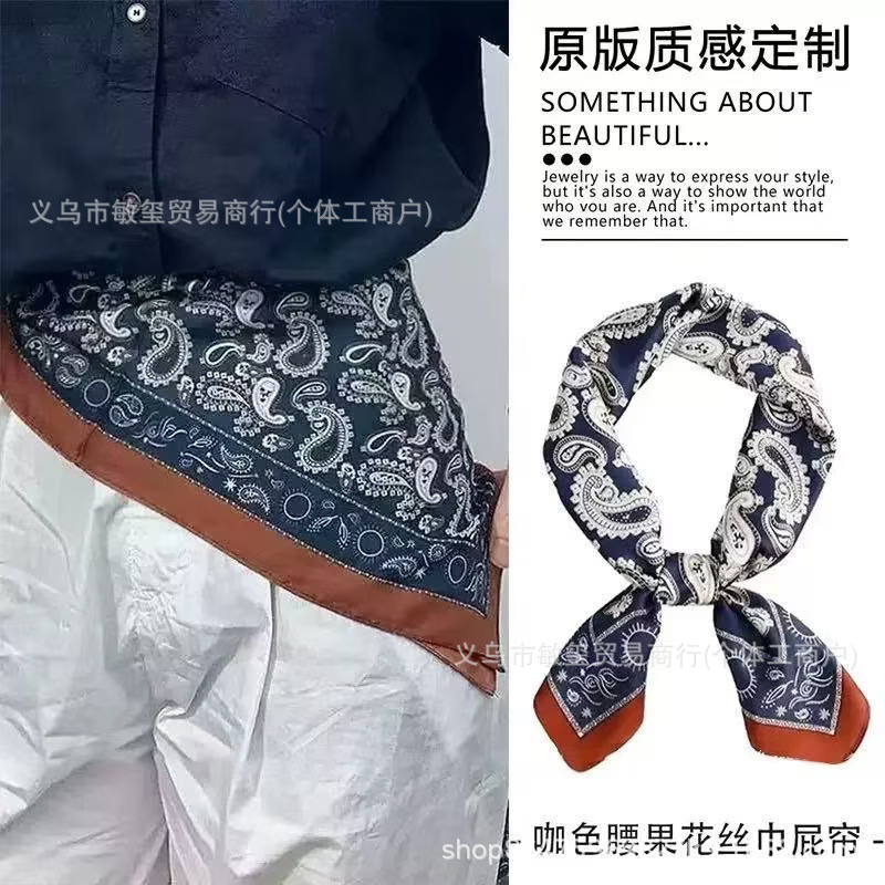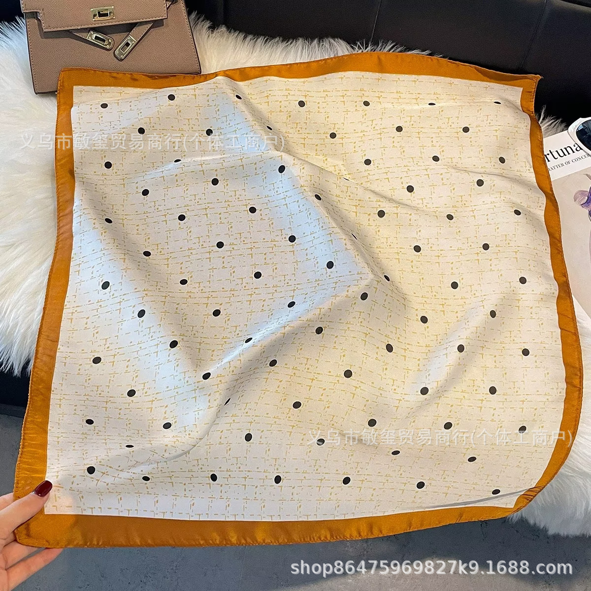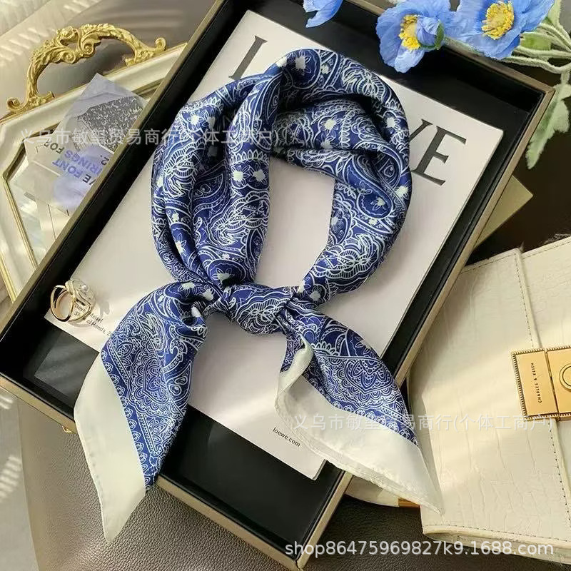 外贸工厂丽锦缎百搭波点腰果仿真丝70*70方巾高级感名媛围巾披肩