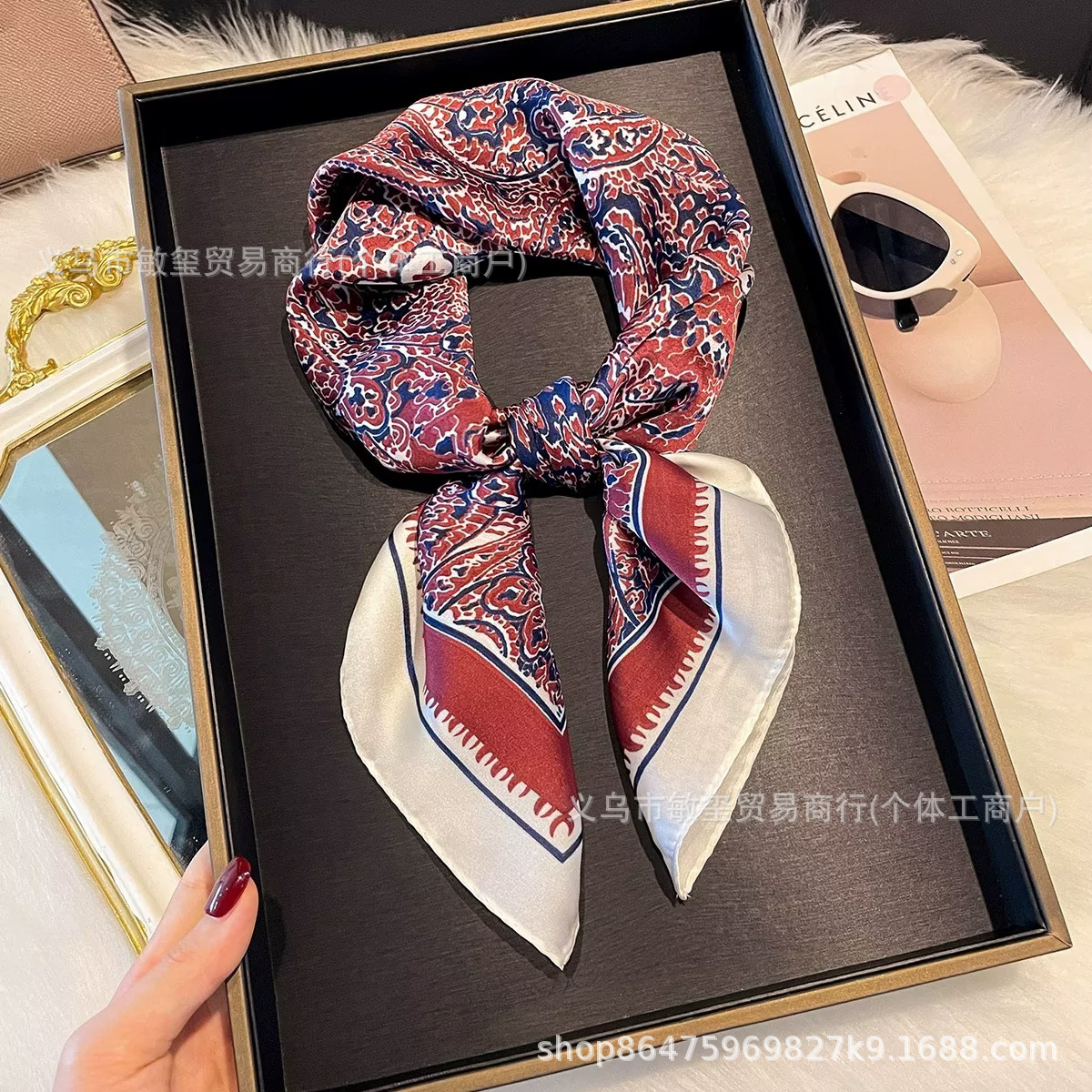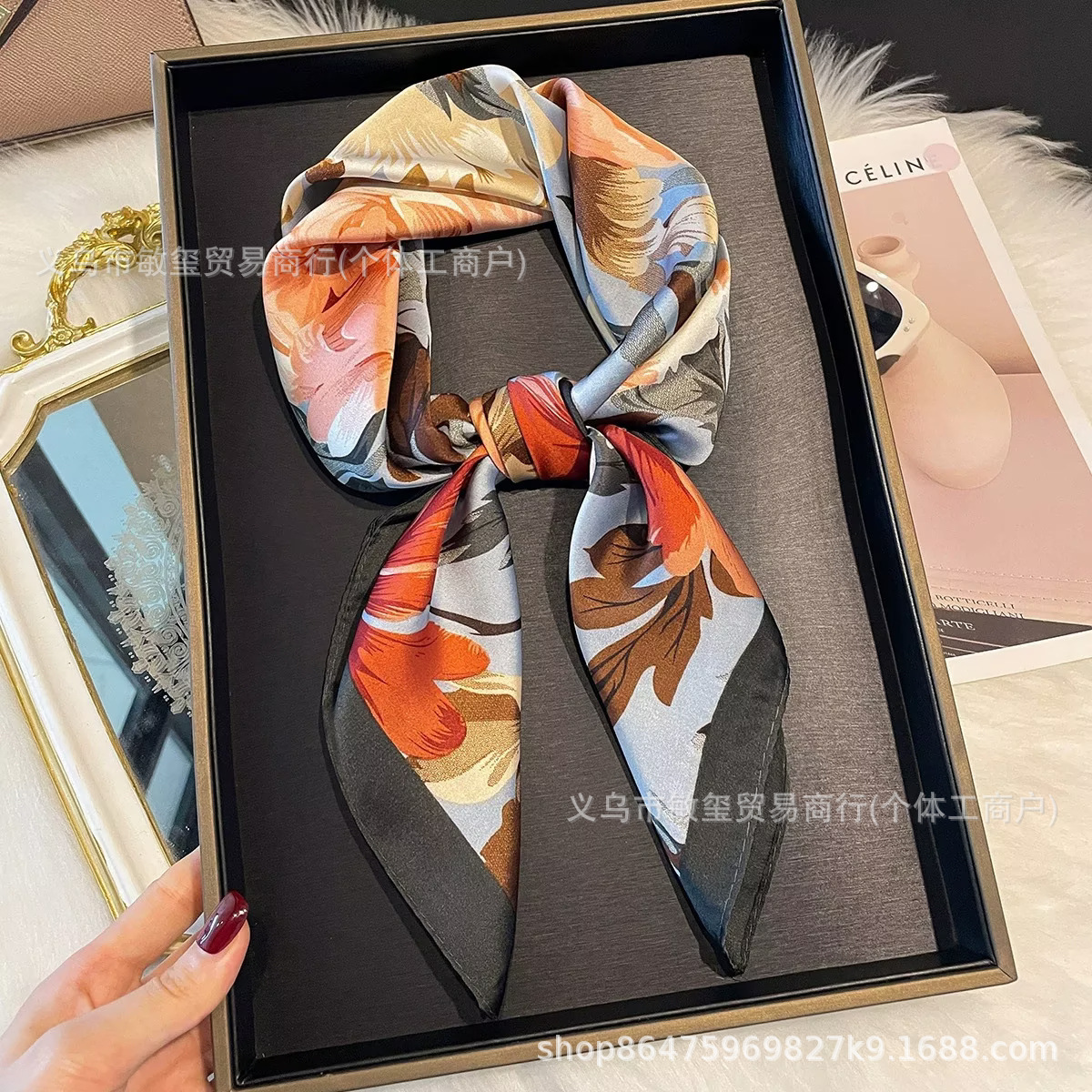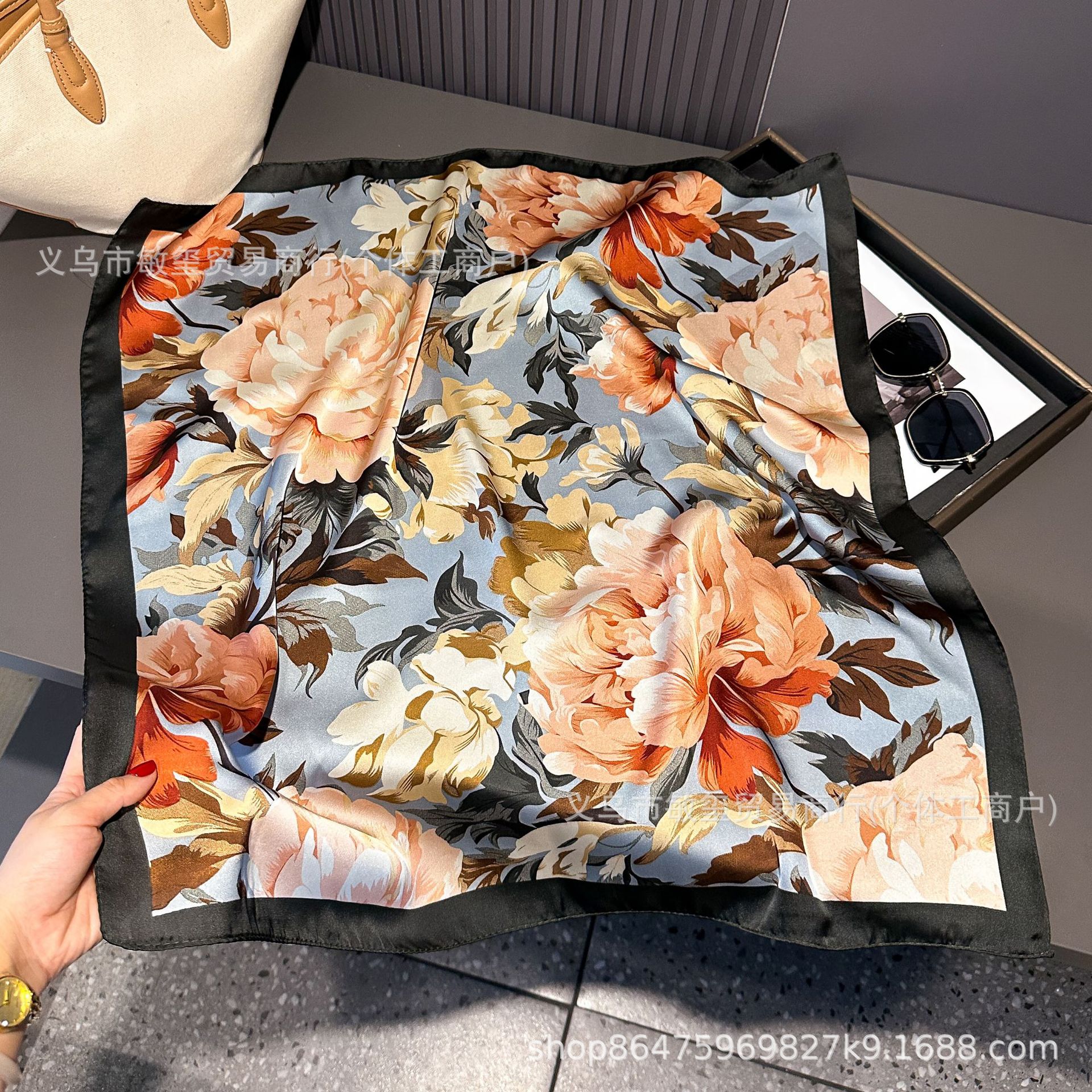面料名称: 丽锦缎 款式: 方巾 风格: 时尚OL,欧美街头风,法式风,欧美,优雅 品牌: 其他 尺寸: 70X70 适合季节: 春季 颜色: 01,02,03,04,05,06,07 长度(CM): 70 产地: 金华 货号: 0415 编织方法: 平纹 流行元素: 玫瑰花 是否跨境出口专供货源: 是 主要下游平台: 淘宝,京东,ebay,亚马逊,wish, 主要销售地区: 非洲,欧洲,南美,东南亚,北美,东北亚, 上市年份/季节: 2026年春季 风格分类: 时尚通勤 处理工艺: 印花 流行元素分类: 植物花卉 重量: 0.04 kg/条