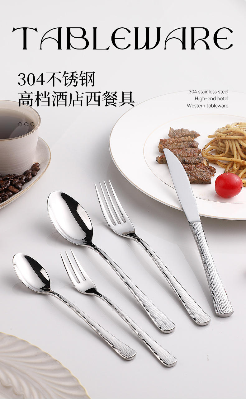 亚马逊跨境 牛排刀叉304不锈钢树纹高档餐具酒店西餐刀叉勺咖啡勺 English | 投诉