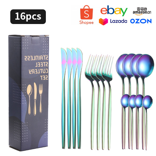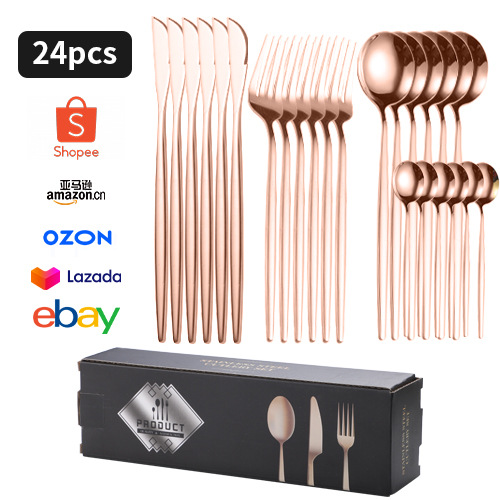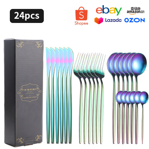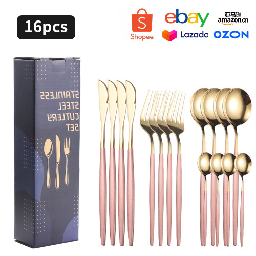 跨境不锈钢餐具套装24件套家用刀叉勺子西餐牛排刀叉勺16件礼盒装