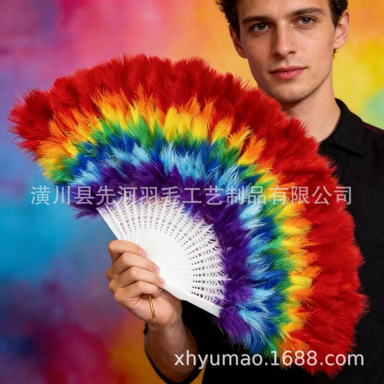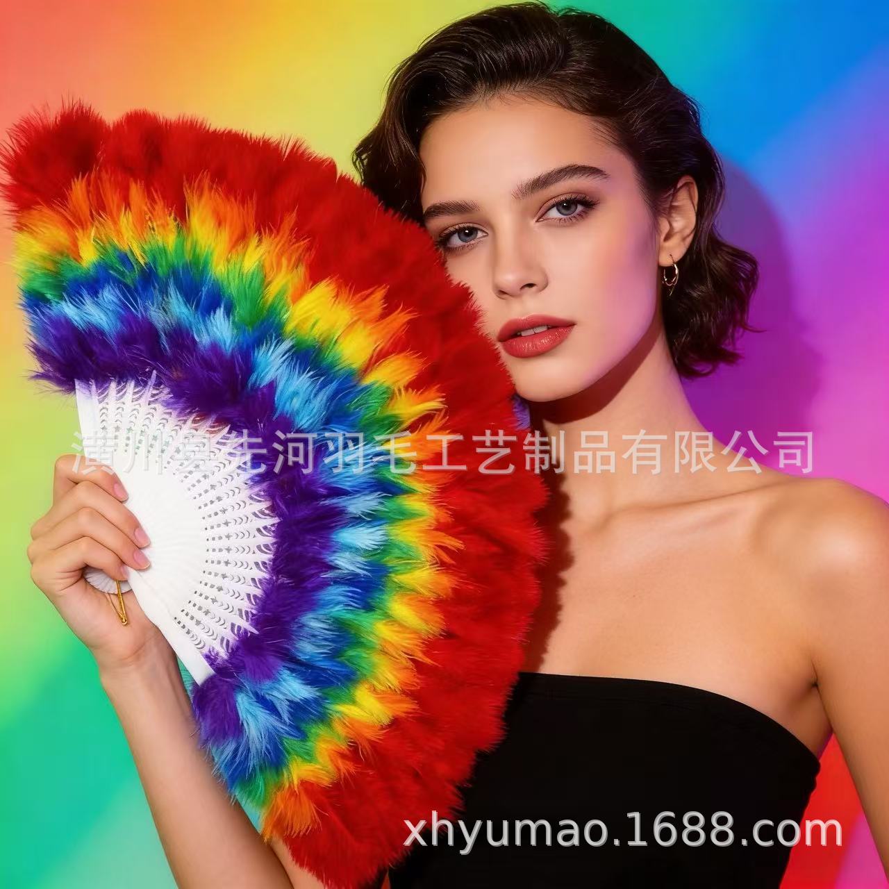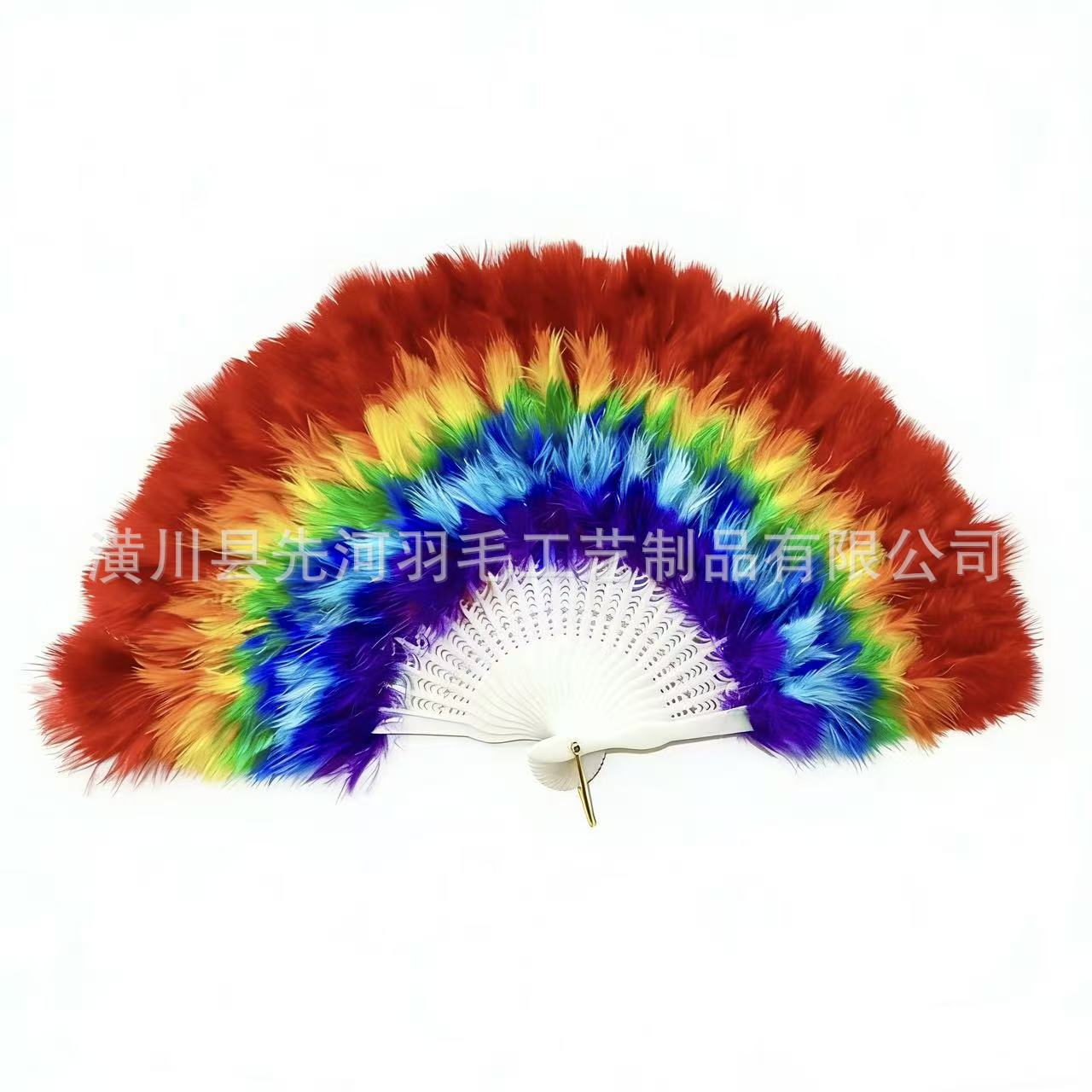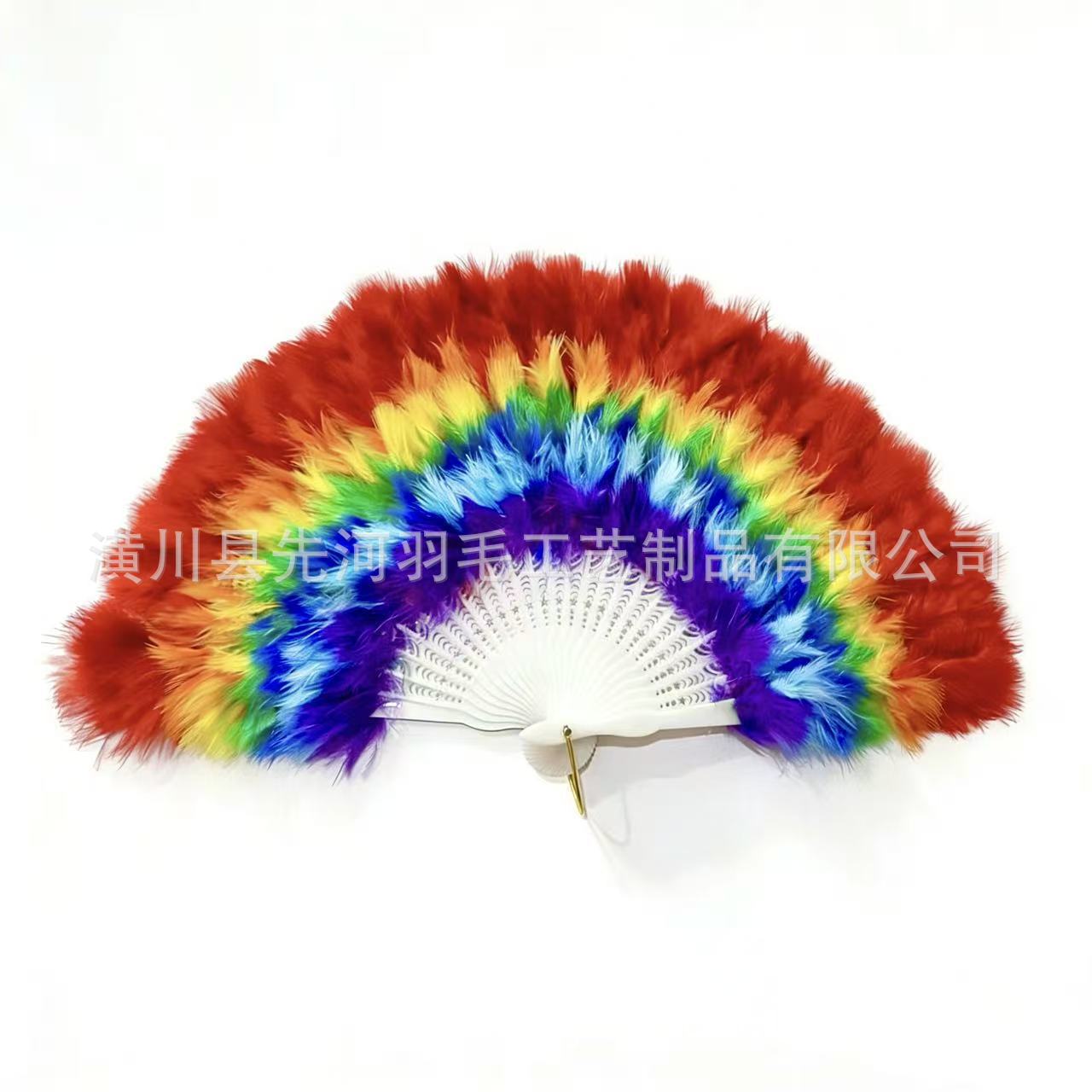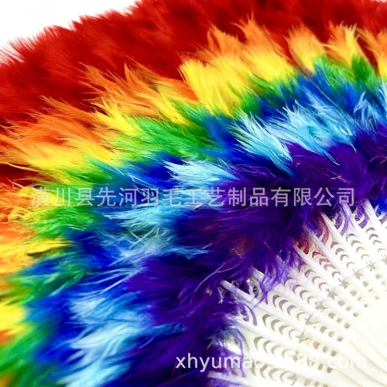 跨境爆款彩虹羽毛扇子古风扇婚礼舞蹈演出道具表演折扇