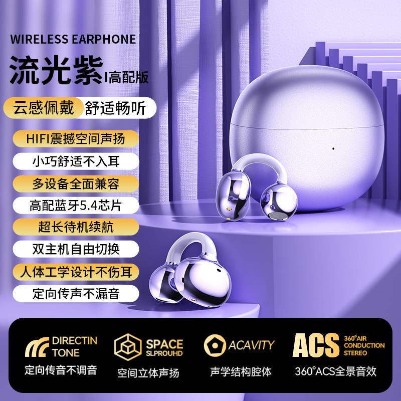 品牌: 中性 功能: 立体声,通话功能,语音控制,支持音乐 防水性能: 不支持防水 芯片类型: 中科蓝讯 材质: 塑料 续航时间: 0-4小时 使用方式: 耳夹式 传输范围: 10米 蓝牙协议: 5.4 是否单双耳: 双边立体声 颜色: Q73黑色,Q73肤色,Q73紫色,Q7 主要下游平台: ebay,亚马逊,wish,速卖通,独立 主要销售地区: 非洲,欧洲,南美,东南亚,北美,东北亚, 有可授权的自有品牌: 否 是否跨境出口专供货源: 是 支持订制: 支持 类型: 常规款 是否专利货源: 否 模具类型: 私模 上市年份/季节: 2026