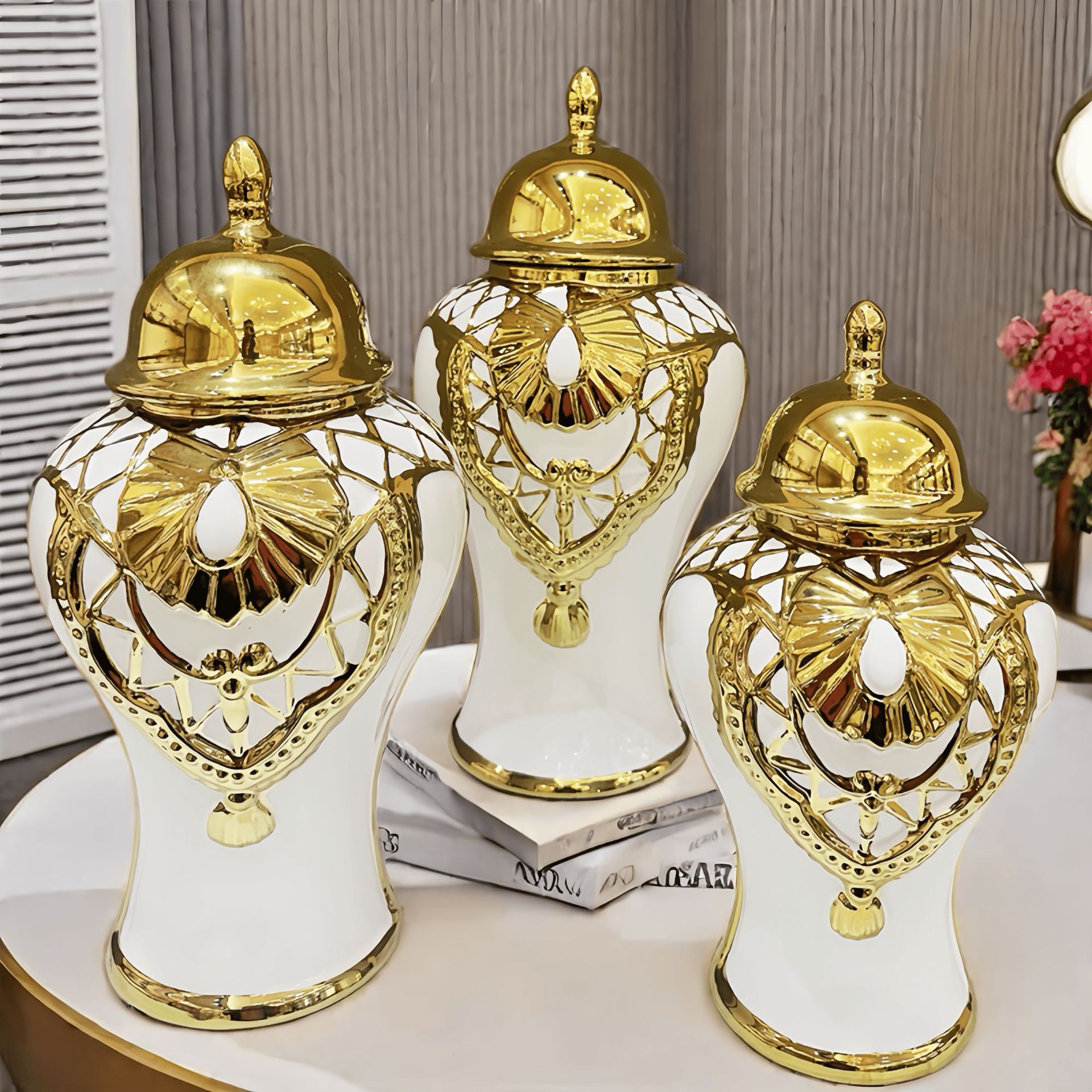 陶瓷轻着电镀将军獾 欧式花插花瓶工艺品摆件玄关软装装饰储物瓘