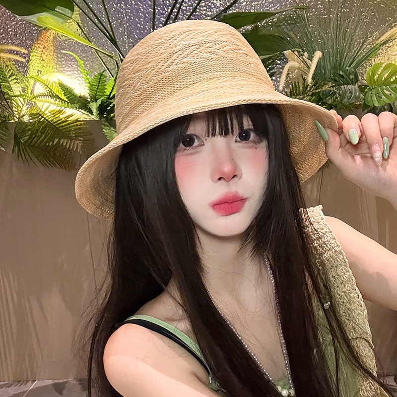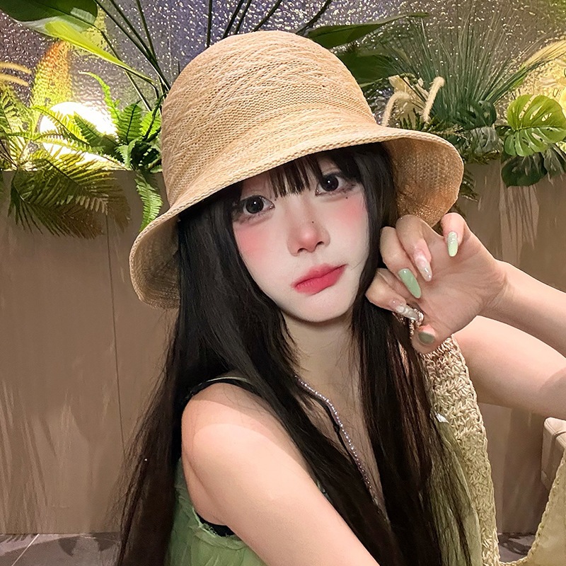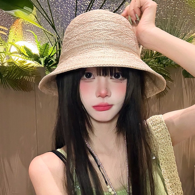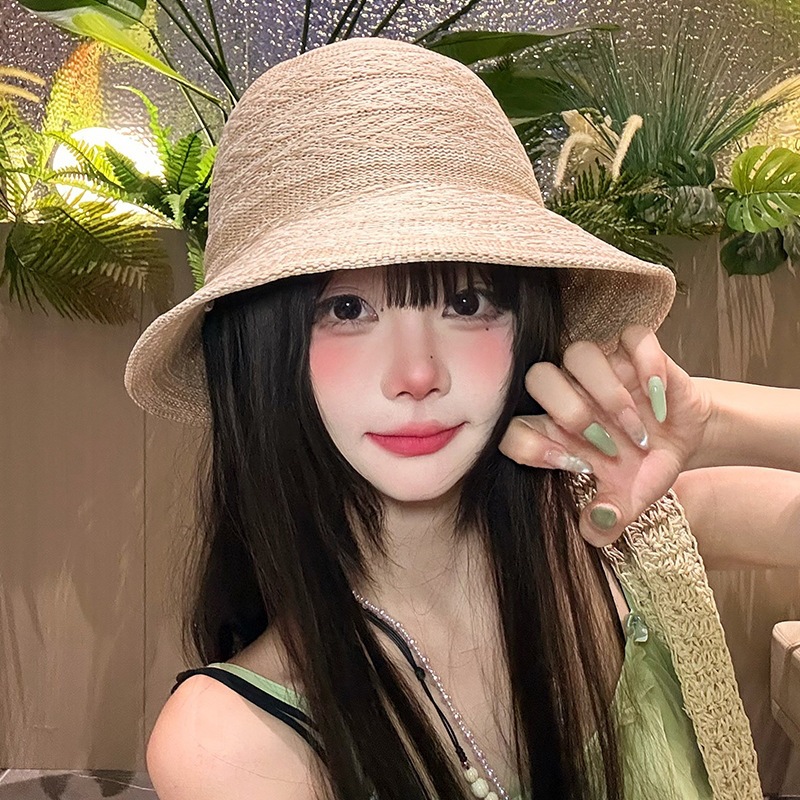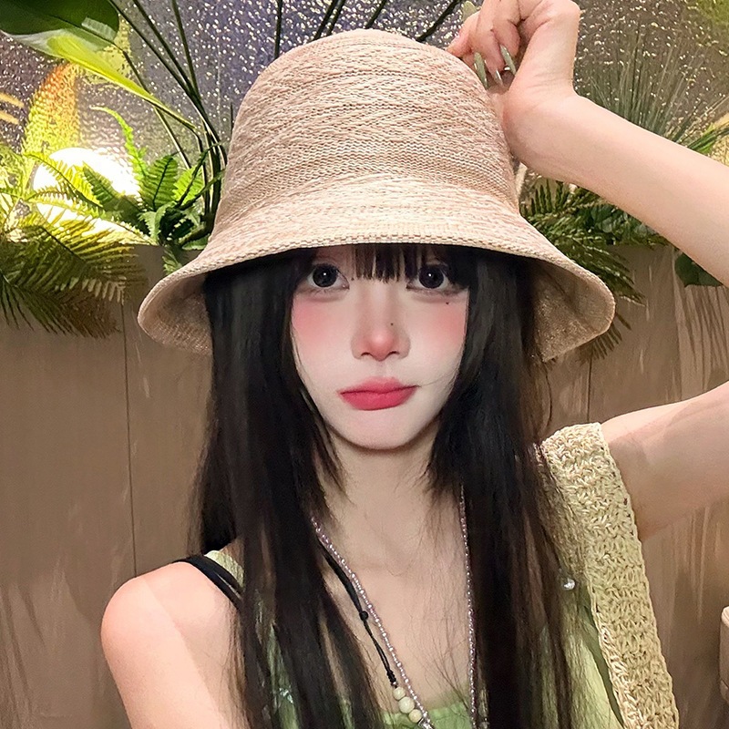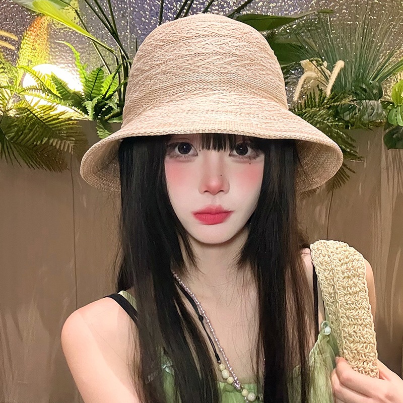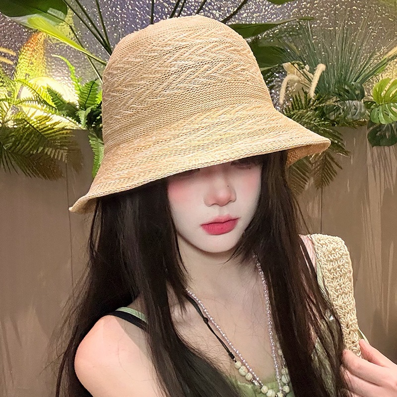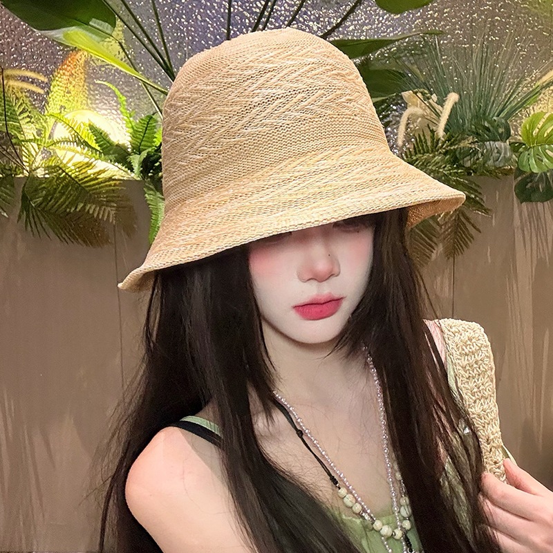 条纹编织透气防晒太阳帽女夏季韩系高级感户外出游防紫外线遮阳帽 English | 投诉