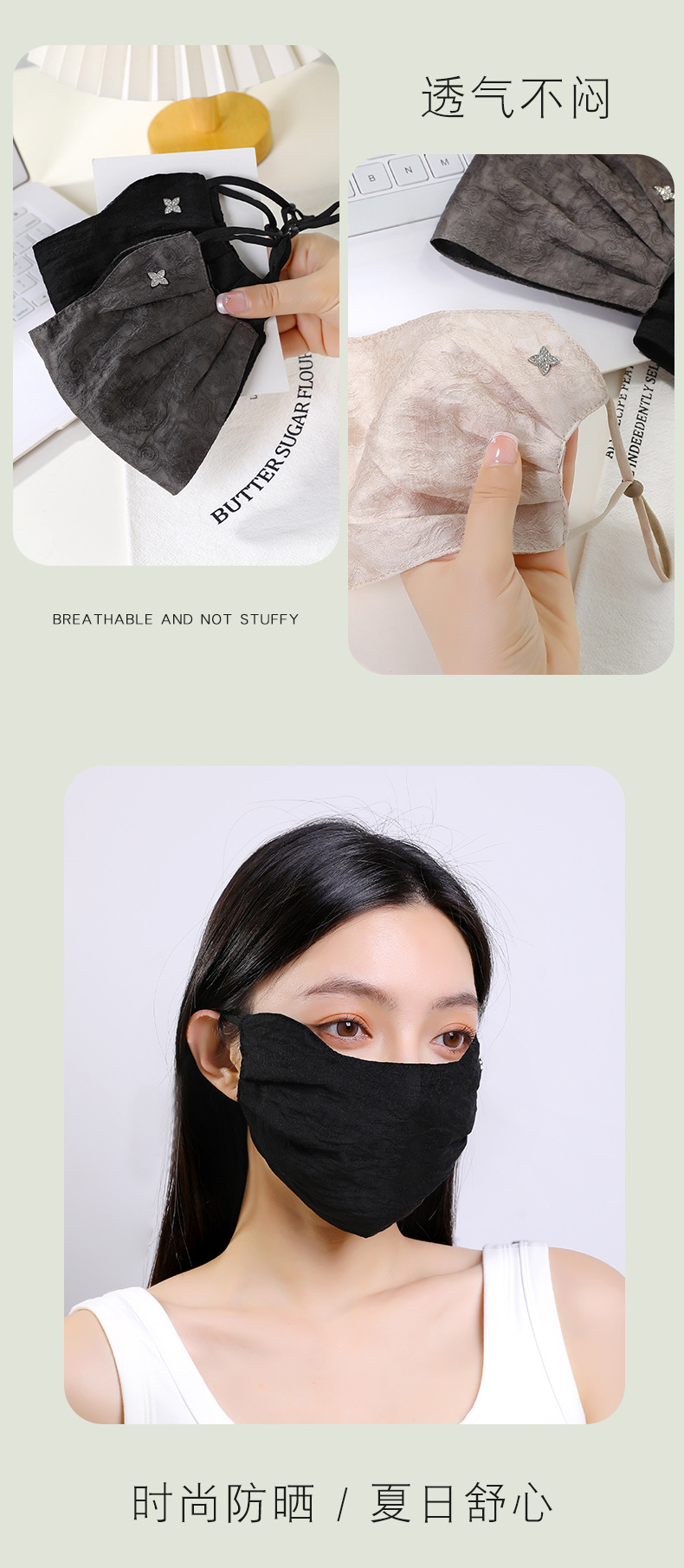 女士夏季透气护眼角高颜值防晒薄款面罩防紫外线甜美遮阳防晒口罩 English | 投诉