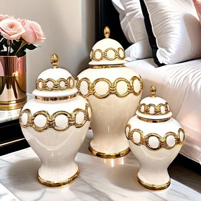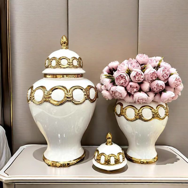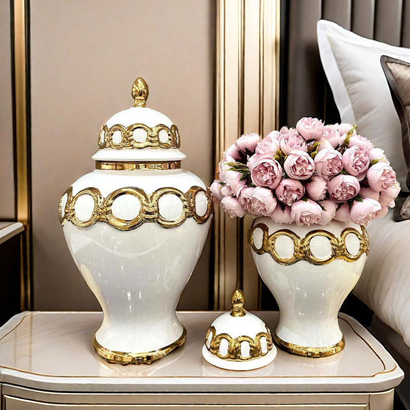 储物罐软装装饰陶瓷轻奢电镀将军罐 欧式花插花瓶工艺品摆件玄关 English | 投诉