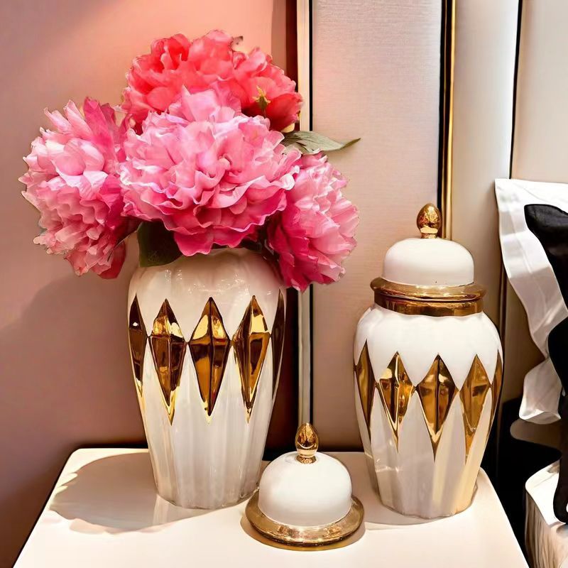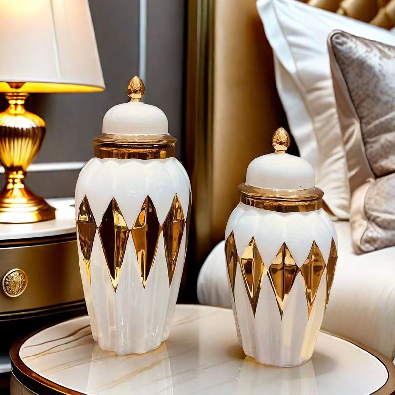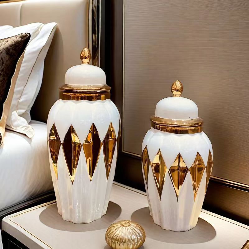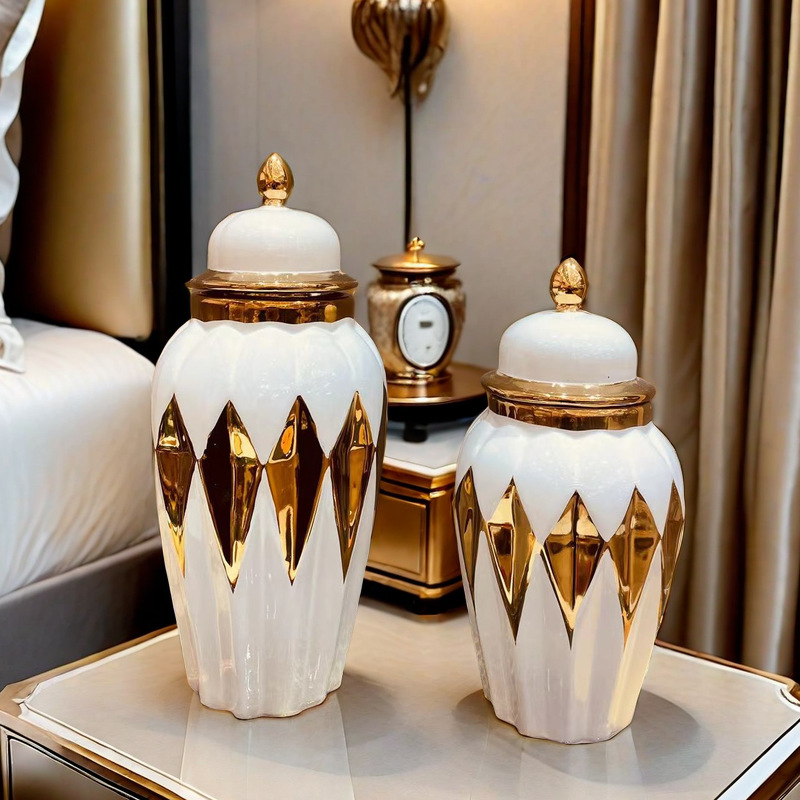 陶瓷轻奢电镀将军罐 欧式花插花瓶工艺品摆件玄关软装装饰储物罐 English | 投诉