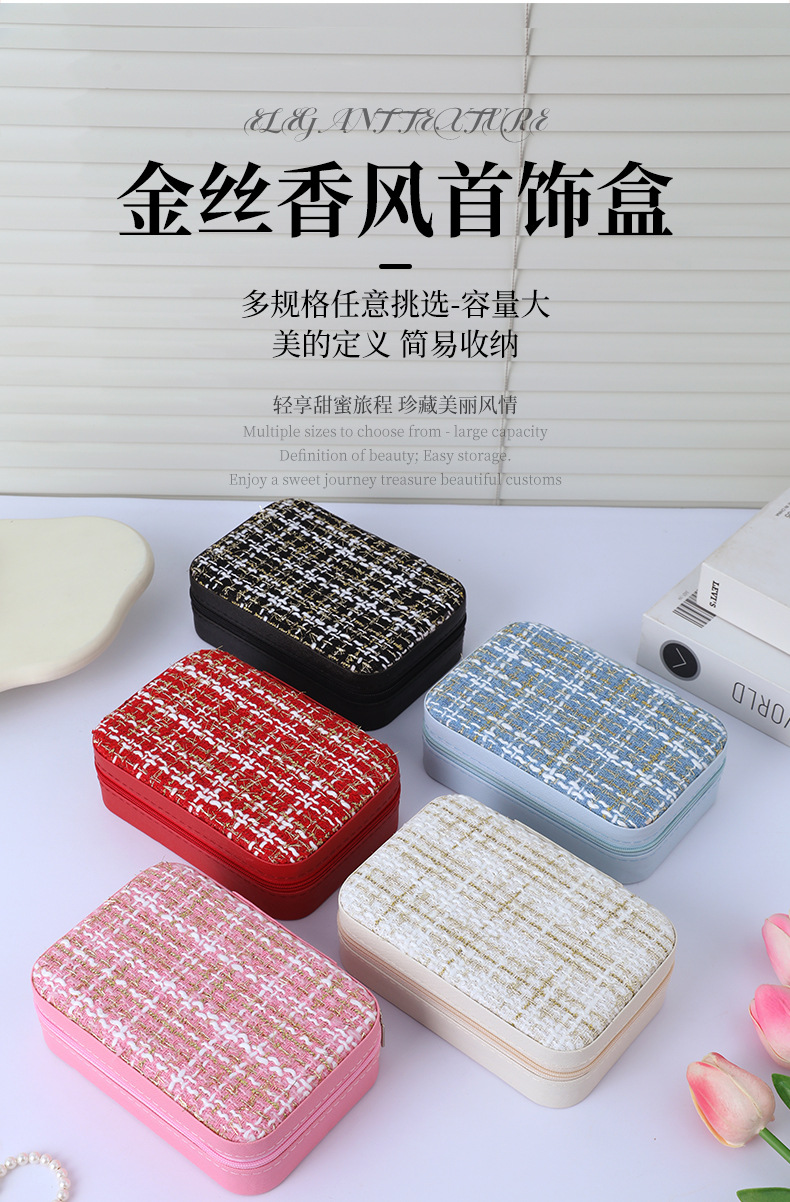 材质: 涤纶 产品类别: 首饰盒 风格: 韩式风 品牌: 麦啼 规格: 16*11*5 型号: 1006金丝小香风 硬度: 硬 图案: 格纹 适用送礼场合: 婚庆,旅游纪念,员工福利,其他 加工定制: 是 货号: 1006金丝小香风 颜色: 金丝小香风粉色,金丝小香风蓝色,金丝小香 尺寸: 16*11*5