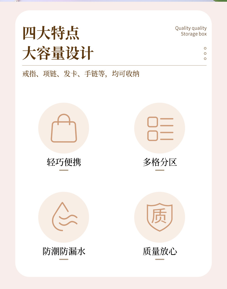 简约韩版首饰盒大容量便携好装收纳盒耳环戒指耳饰首饰精致首饰盒 English | 投诉