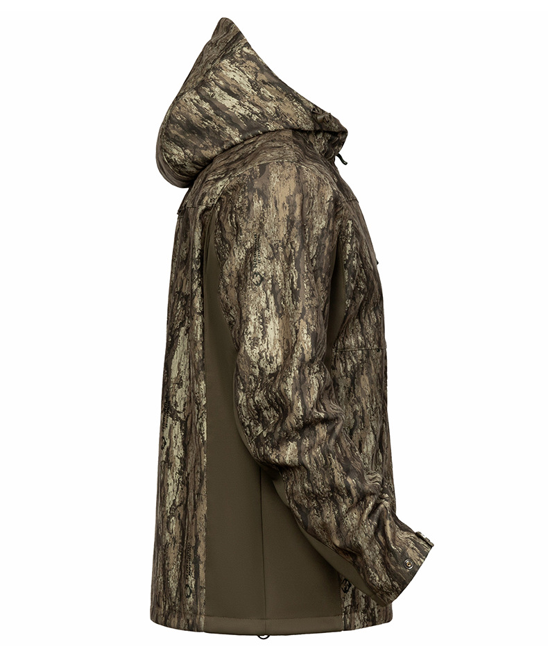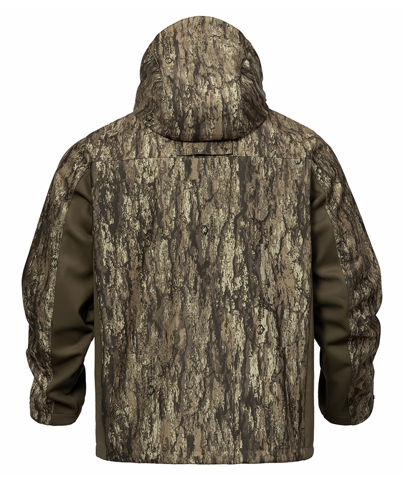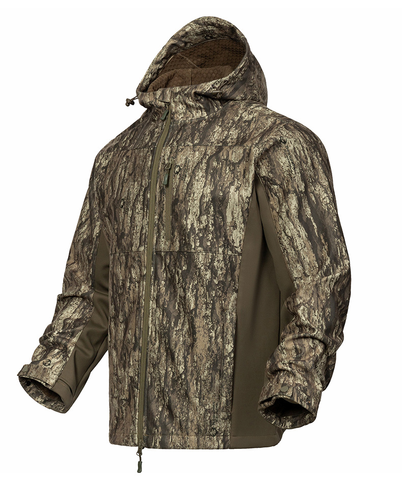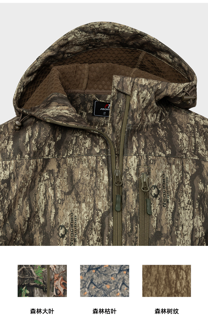 防泼水户外软壳连帽服 防风保暖多口袋森林伪装服定制