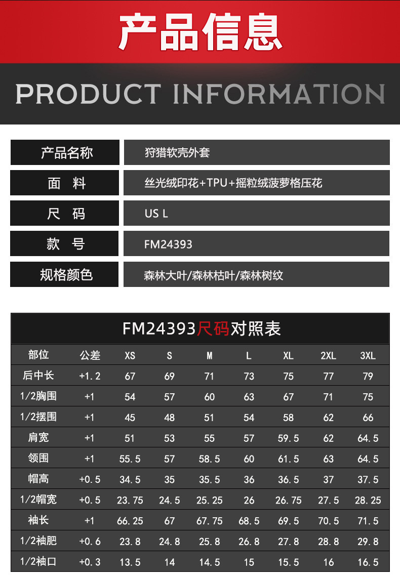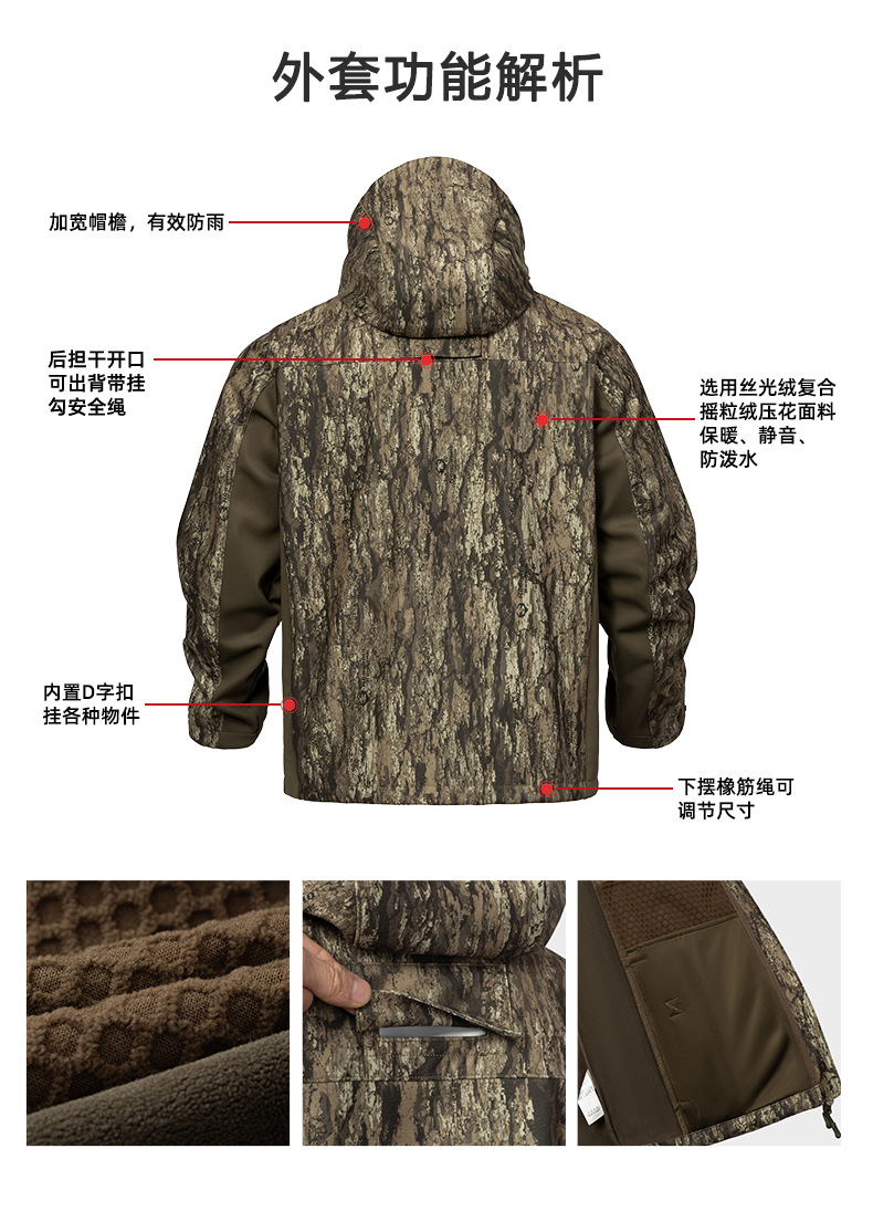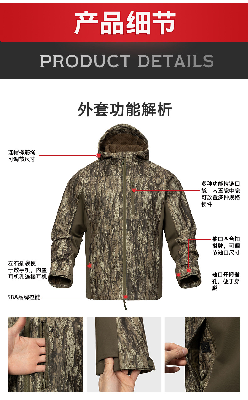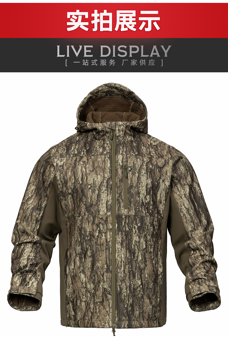 防泼水户外软壳连帽服 防风保暖多口袋森林伪装服定制 投诉
