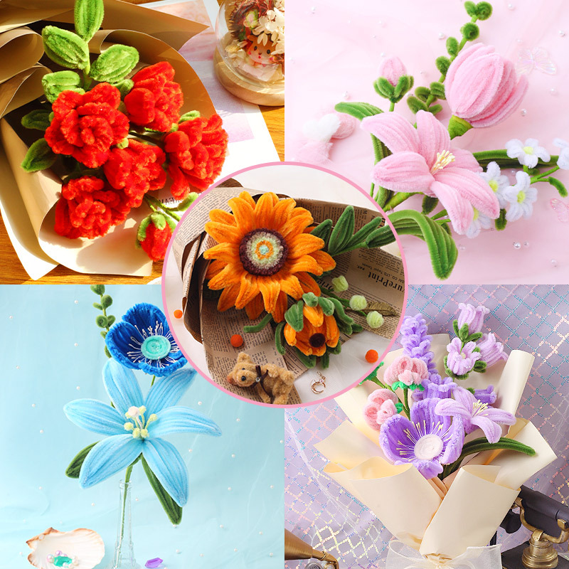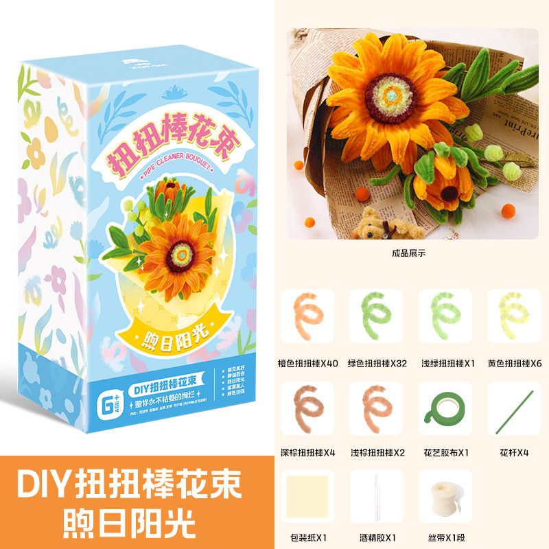 玩具先生扭扭棒花束手工diy材料包全套郁金香向日葵玫瑰花毛根女
