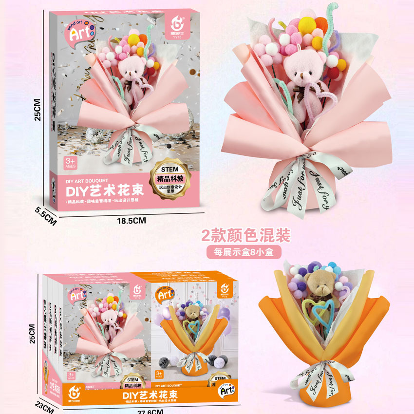 材质: 毛绒 品牌: 其他 是否能够DIY: 是 是否电动: 否 是否多功能: 否 适用年龄: 儿童(4-6岁) 产地: 汕头澄海 货号: YY16 产品类别: DIY艺术花束 规格: 18.5*5.5*25 包装方式: 彩盒 加工定制: 否 是否外贸: 否 是否有动漫形象: 否 是否有导购视频: 是 是否专供外贸: 否 3C配置类别: 14岁以下其它玩具 颜色: YY16DIY艺术花束1小盒(8盒发一展 主要下游平台: 亚马逊,wish,速卖通,独立站 主要销售地区: 东南亚,东北亚,中东 重量: 1.0 kg/件