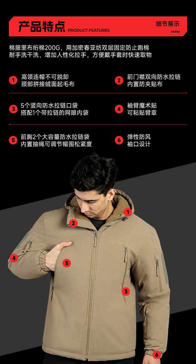 冬款迷彩连帽户外战术服 防泼水F2.0多口袋防寒棉服定制 投诉